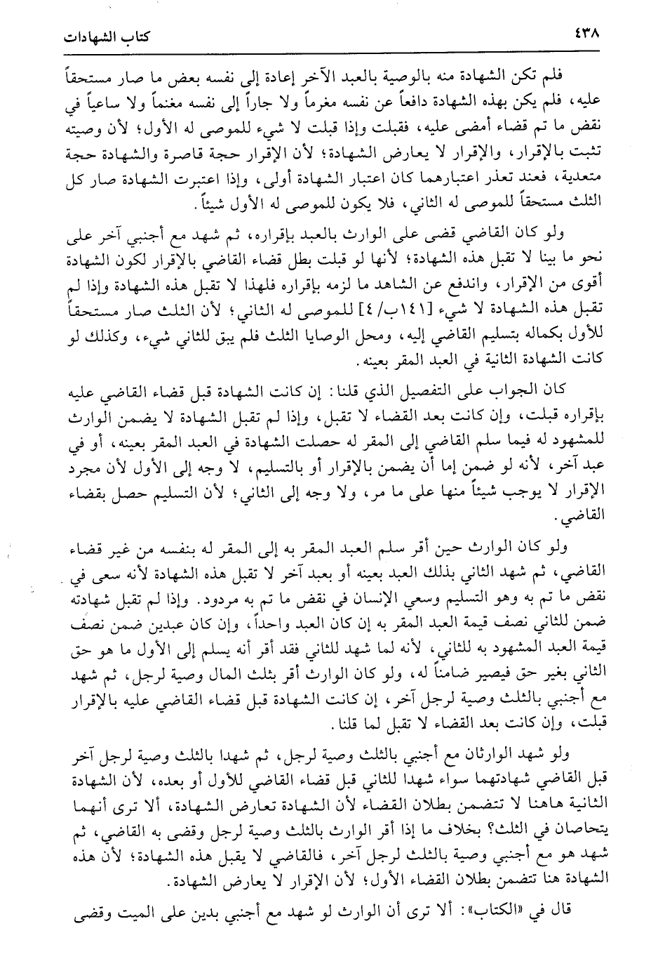 ولو كان الوارث حين أقر سلم العبد المقر به إلى المقر له بنفسه من غير قضاء القاضي، ثم شهد الثاني بذلك العبد بعينه أو بعبد آخر لا تقبل هذه الشهادة لأنه سعى في نقض ما تم به وهو التسليم وسعي الإنسان في نقض ما تم به مردود.