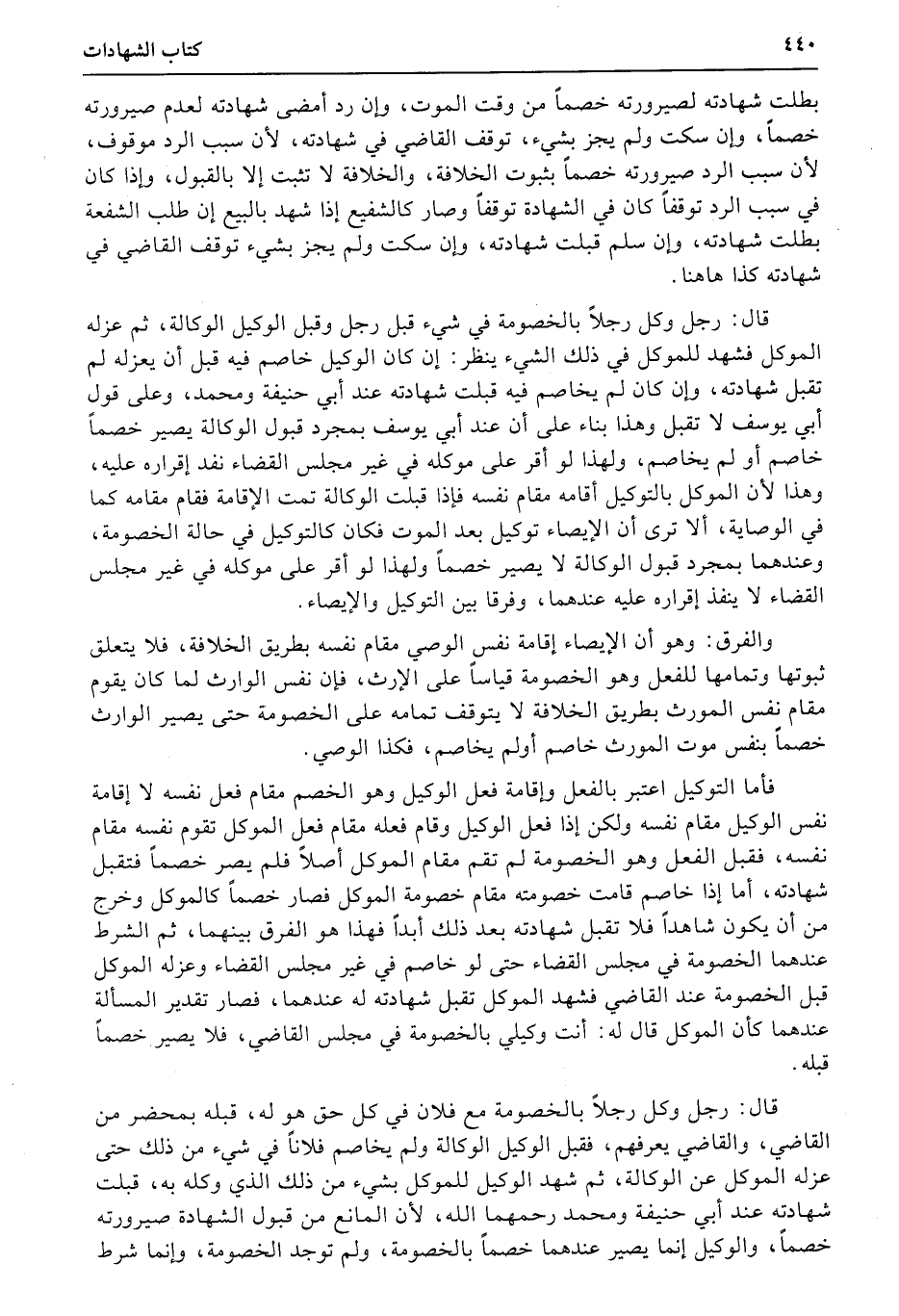 فأما التوكيل اعتبر بالفعل وإقامة فعل الوكيل وهو الخصم مقام فعل نفسه لا إقامة نفس الوكيل مقام نفسه ولكن إذا فعل الوكيل وقام فعله مقام فعل الموكل تقوم نفسه مقام نفسه، فقبل الفعل وهو الخصومة لم تقم مقام الموكل أصلاً فلم يصر خصماً فتقبل شهادته، أما إذا خاصم قامت خصومته مقام خصومة الموكل فصار خصماً كالموكل وخرج من أن يكون شاهداً فلا تقبل شهادته بعد ذلك أبداً فهذا هو الفرق بينهما، ثم الشرط عندهما الخصومة في مجلس القضاء حتى لو خاصم في غير مجلس القضاء وعزله الموكل قبل الخصومة عند القاضي فشهد الموكل تقبل شهادته له عندهما، فصار تقدير المسألة عندهما كأن الموكل قال له: أنت وكيلي بالخصومة في مجلس القاضي، فلا يصير خصماً قبله.