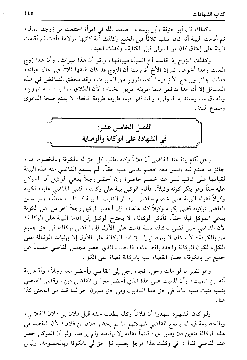 الفصل الخامس عشر: في الشهادة على الوكالة والوصاية