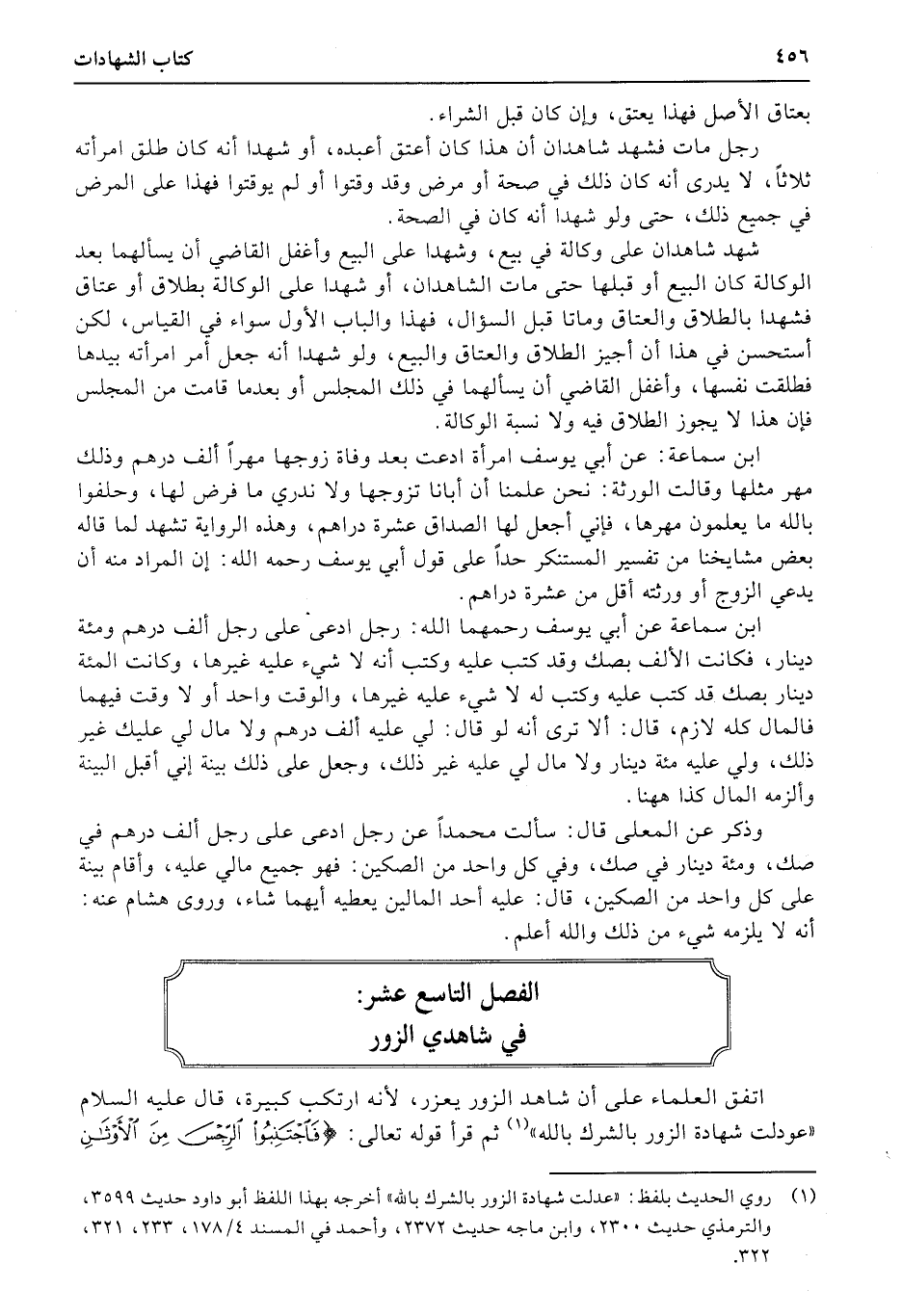 شهد شاهدان على وكالة في بيع، وشهدا على البيع وأغفل القاضي أن يسألهما بعد الوكالة كان البيع أو قبلها حتى مات الشاهدان، أو شهدا على الوكالة بطلاق أو عتاق فشهدا بالطلاق والعتاق وماتا قبل السؤال، فهذا والباب الأول سواء في القياس، لكن أستحسن في هذا أن أجيز الطلاق والعتاق والبيع، ولو شهدا أنه جعل أمر امرأته بيدها فطلقت نفسها، وأغفل القاضي أن يسألهما في ذلك المجلس أو بعدما قامت من المجلس فإن هذا لا يجوز الطلاق فيه ولا نسبة الوكالة.