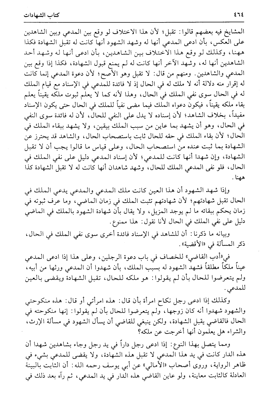وإذا شهد الشهود أن هذا العين كانت ملك المدعي والمدعي يدعي الملك في الحال تقبل شهادتهم؛ لأن شهادتهم تثبت الملك في زمان الماضي، وما عرف ثبوته في زمان يحكم ببقائه ما لم يوجد المزيل، ولا يقال بأن شهادة الشهود بالملك في الماضي دليل على نفي الملك في الحال لأنا نقول: هذا ممنوع.
