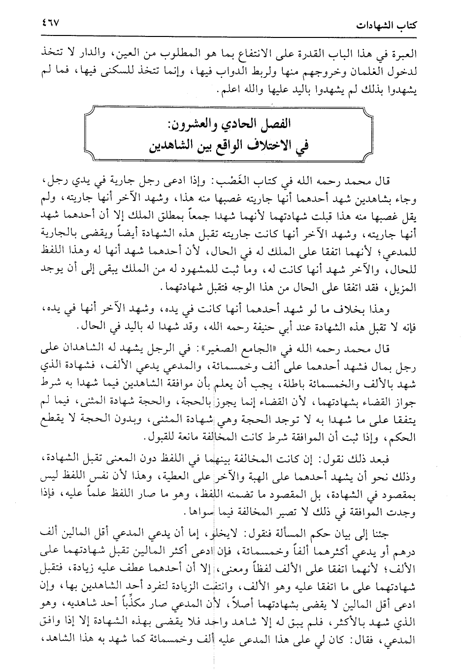 الفصل الحادي والعشرون: في الاختلاف الواقع بين الشاهدين
