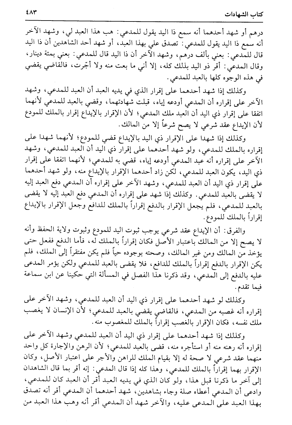 وكذلك إذا شهد على إقراره أن المدعي دفع العبد إليه لا يقضى بالعبد للمدعي، فلم يجعل الإقرار بالدفع إقراراً بالملك للدافع وجعل الإقرار بالإيداع إقراراً بالملك للمودع.