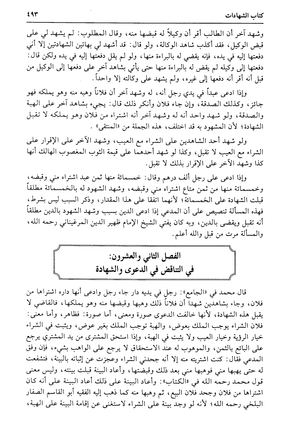 الفصل الثاني والعشرون: في التناقض في الدعوى والشهادة