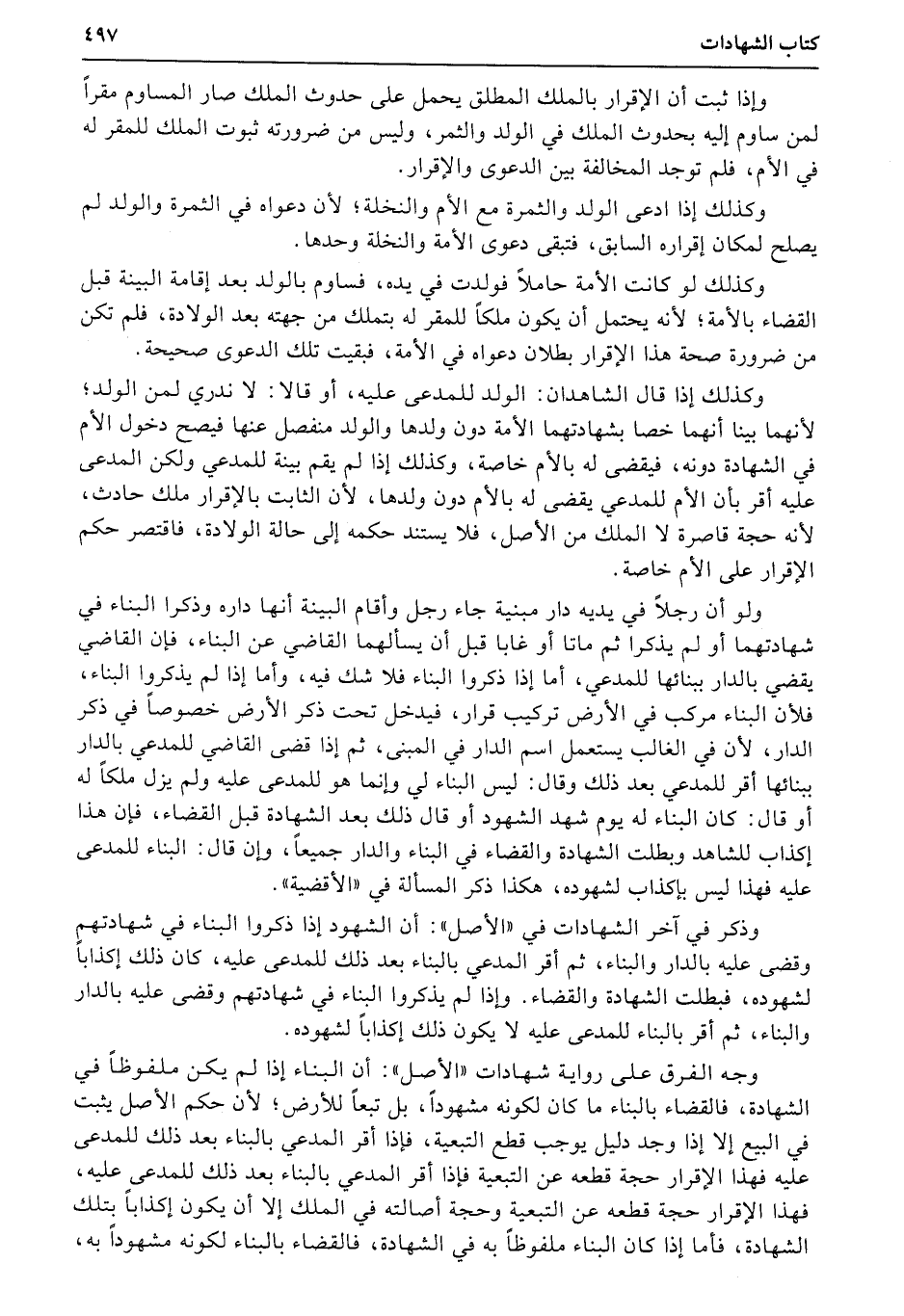 وجه الفرق على رواية شهادات «الأصل» : أن البناء إذا لم يكن ملفوظاً في الشهادة، فالقضاء بالبناء ما كان لكونه مشهوداً، بل تبعاً للأرض؛ لأن حكم الأصل يثبت في البيع إلا إذا وجد دليل يوجب قطع التبعية، فإذا أقر المدعي بالبناء بعد ذلك للمدعى عليه فهذا الإقرار حجة قطعه عن التبعية فإذا أقر المدعي بالبناء بعد ذلك للمدعى عليه، فهذا الإقرار حجة قطعه عن التبعية وحجة أصالته في الملك إلا أن يكون إكذاباً بتلك الشهادة، فأما إذا كان البناء ملفوظاً به في الشهادة، فالقضاء بالبناء لكونه مشهوداً به،