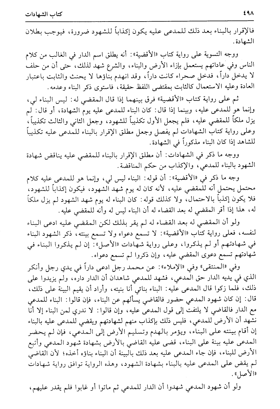 فالإقرار بالبناء بعد ذلك للمدعى عليه يكون إكذاباً للشهود ضرورة، فيوجب بطلان الشهادة.