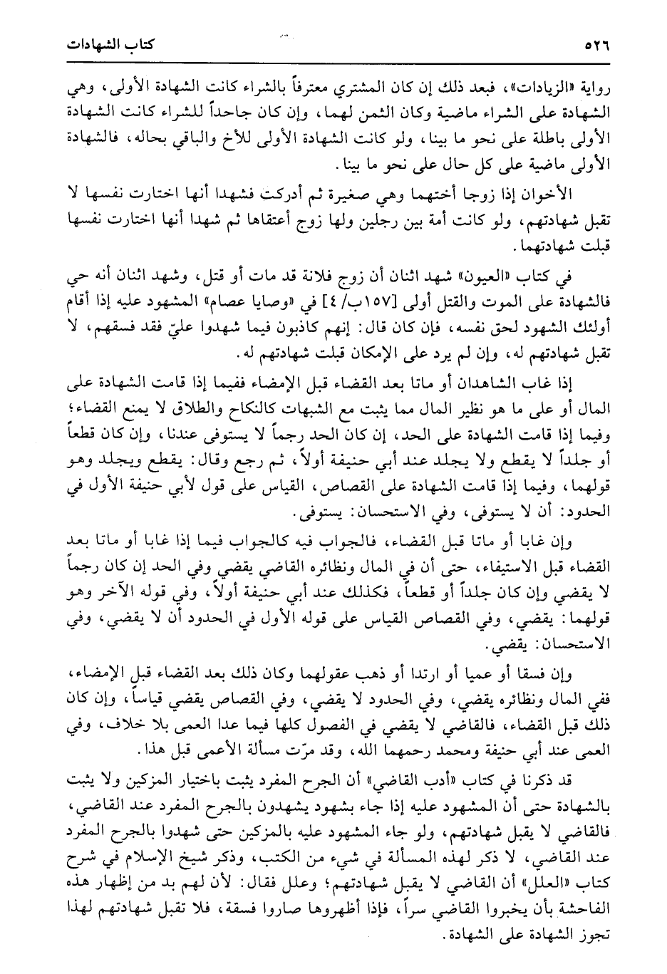 رواية «الزيادات» ، فبعد ذلك إن كان المشتري معترفاً بالشراء كانت الشهادة الأولى، وهي الشهادة على الشراء ماضية وكان الثمن لهما، وإن كان جاحداً للشراء كانت الشهادة الأولى باطلة على نحو ما بينا، ولو كانت الشهادة الأولى للأخ والباقي بحاله، فالشهادة الأولى ماضية على كل حال على نحو ما بينا.
