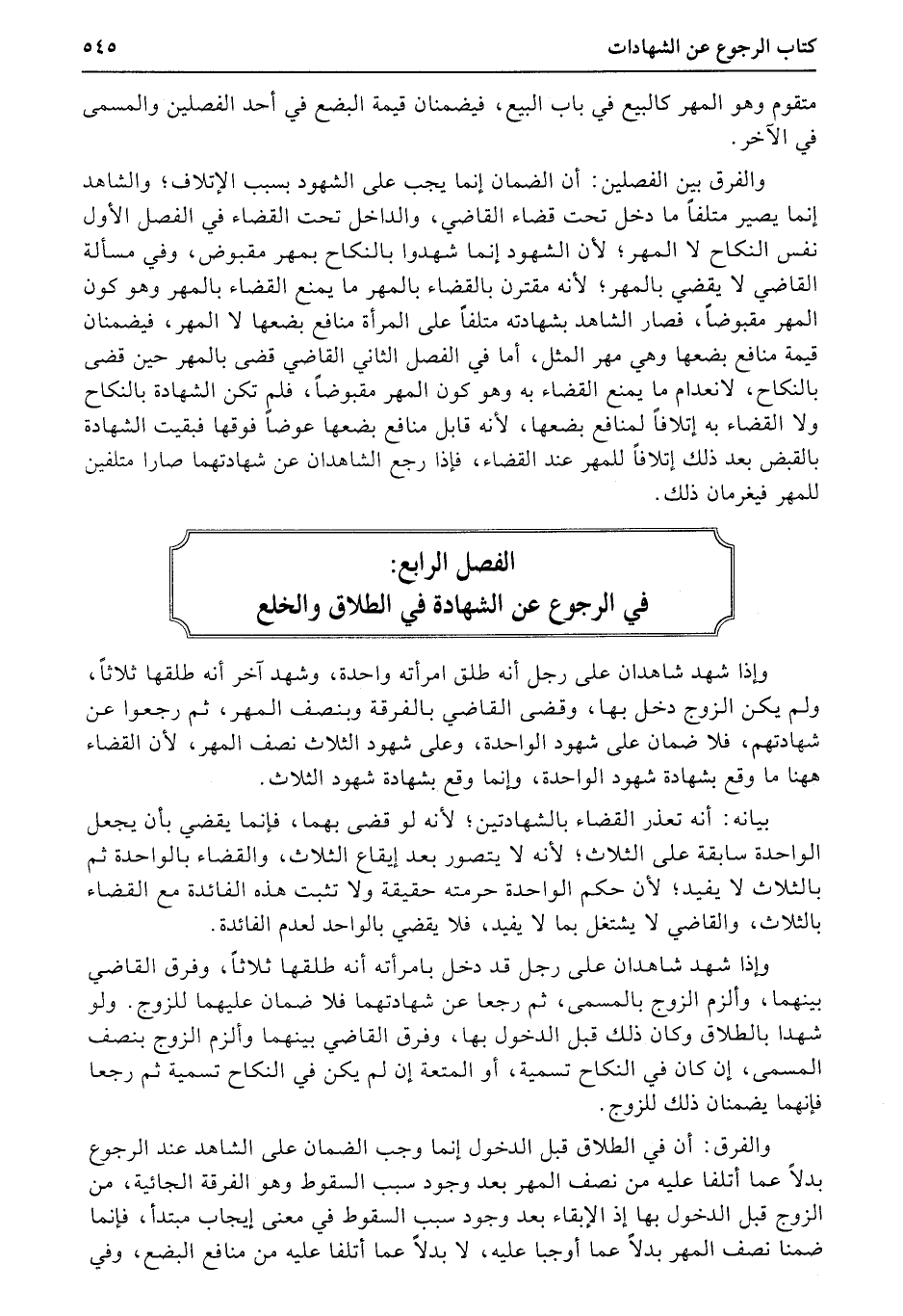 الفصل الرابع: في الرجوع عن الشهادة في الطلاق والخلع