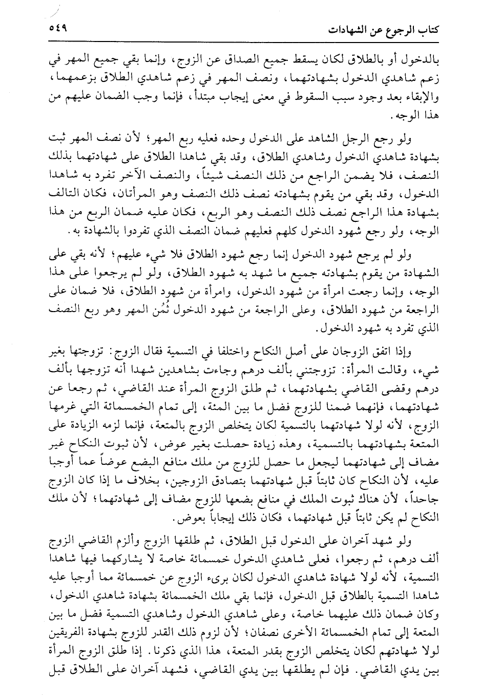 ولو لم يرجع شهود الدخول إنما رجع شهود الطلاق فلا شيء عليهم؛ لأنه بقي على الشهادة من يقوم بشهادته جميع ما شهد به شهود الطلاق، ولو لم يرجعوا على هذا الوجه، وإنما رجعت امرأة من شهود الدخول، وامرأة من شهود الطلاق، فلا ضمان على الراجعة من شهود الطلاق، وعلى الراجعة من شهود الدخول ثُمُن المهر وهو ربع النصف الذي تفرد به شهود الدخول.