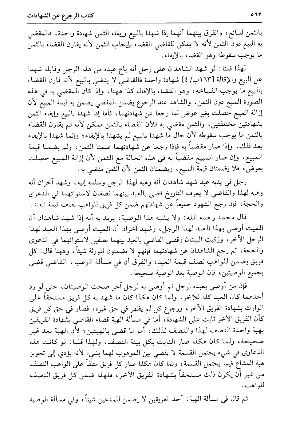 قال محمد رحمه الله: ولا يشبه هذا الوصية، يريد به أنه إذا شهد شاهدان أن الميت أوصى بهذا العبد لهذا الرجل، وشهد آخران أن الميت أوصى بهذا العبد لهذا الرجل الآخر، وزكيت البينتان وقضى القاضي بالعبد بينهما نصفين لاستوائهما في الدعوى والحجة، ثم رجع الشاهدان عن شهادتهما فإنهم لا يضمنون للورثة شيئاً، وههنا قال: كل فريق يضمن للواهب نصف قيمة العبد، والفرق أن في مسألة الوصية، القاضي قضى بجميع الوصيتين، فإن الوصية بعد الوصية صحيحة.