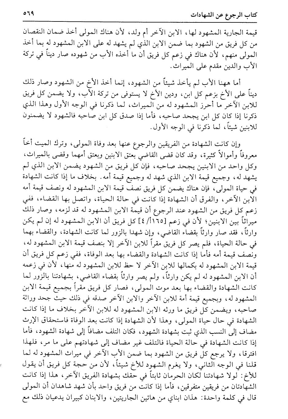 الثاني، ولا يغرم الشهود للأخ شيئاً، لأن من حجة كل فريق أن يقول للأخ: لولا شهادتنا لكان الحرمان ثابتاً في حقك بشهادة الفريق الآخر، هذا إذا كانت الشهادتان من فريقين متفرقين، فأما إذا كانت من فريق واحد بأن شهد شاهدان أن المولى قال في كلمة واحدة: هذان ابناي من هاتين الجاريتين، والابنان كبيران يدعيان ذلك مع
