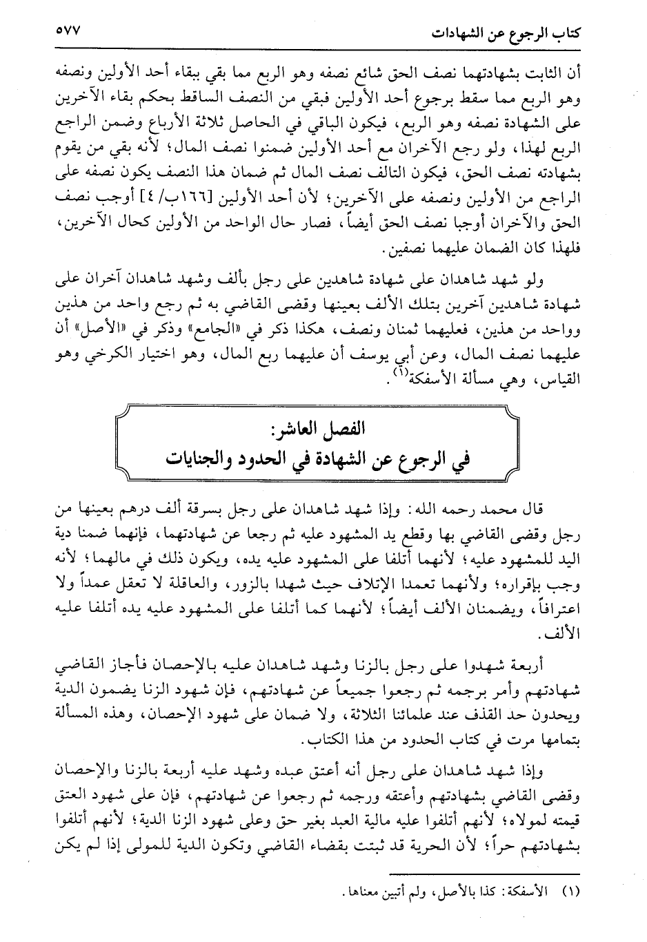الفصل العاشر: في الرجوع عن الشهادة في الحدود والجنايات