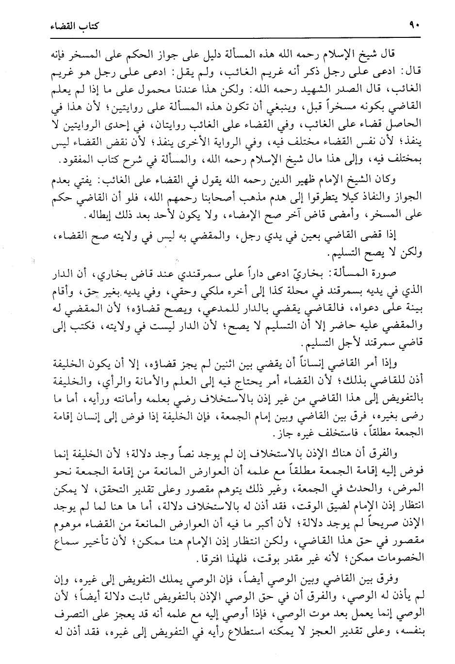 وكان الشيخ الإمام ظهير الدين رحمه الله يقول في القضاء على الغائب: يفتى بعدم الجواز والنفاذ كيلا يتطرقوا إلى هدم مذهب أصحابنا رحمهم الله، فلو أن القاضي حكم على المسخر، وأمضى قاض آخر صح الإمضاء، ولا يكون لأحد بعد ذلك إبطاله.