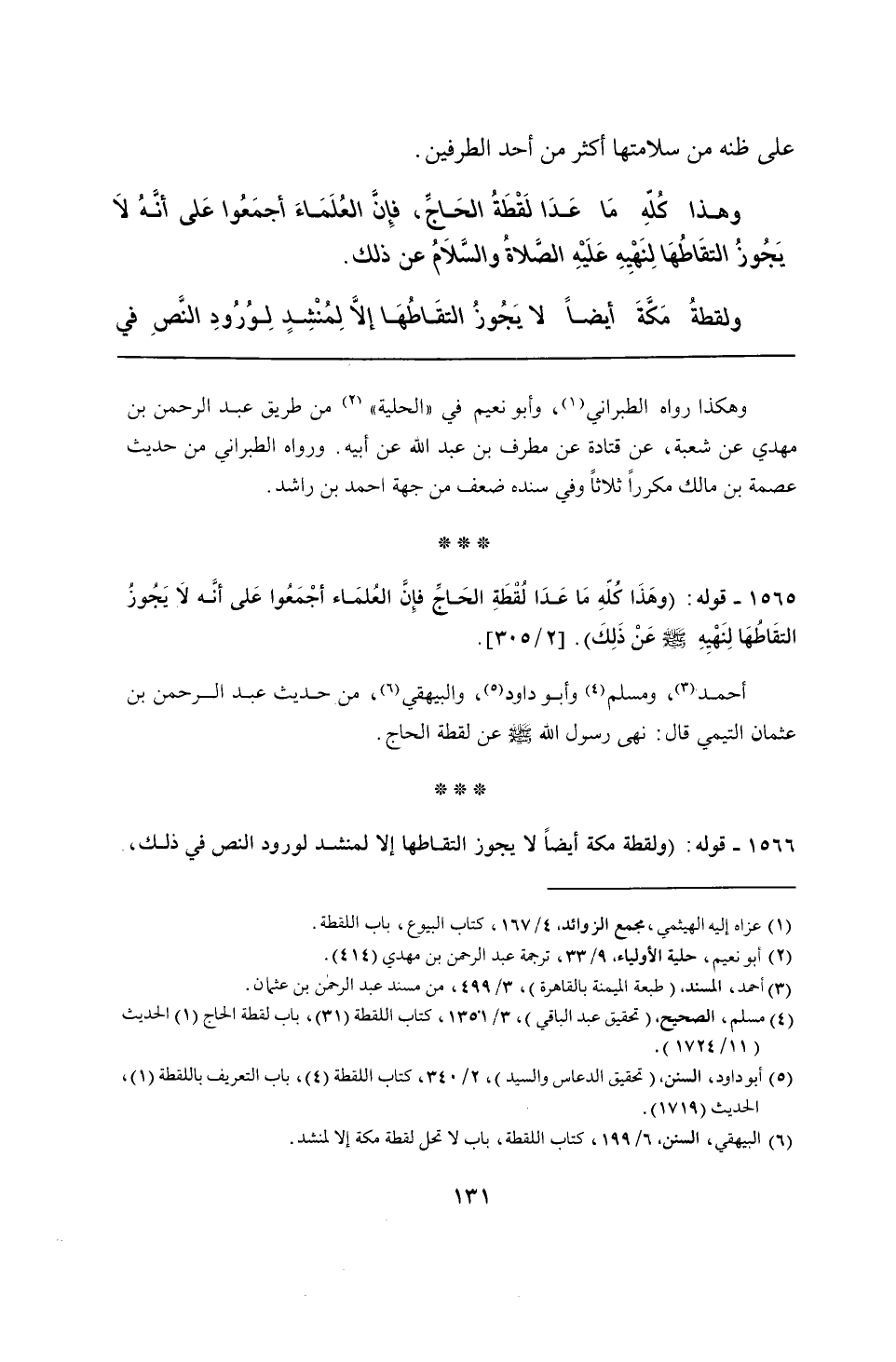 أحمد، ومسلم وأبو داود، والبيهقي، من حديث عبد الرحمن بن عثمان التيمي قال: نهى رسول الله - صلى الله عليه وسلم - عن لقطة الحاج.