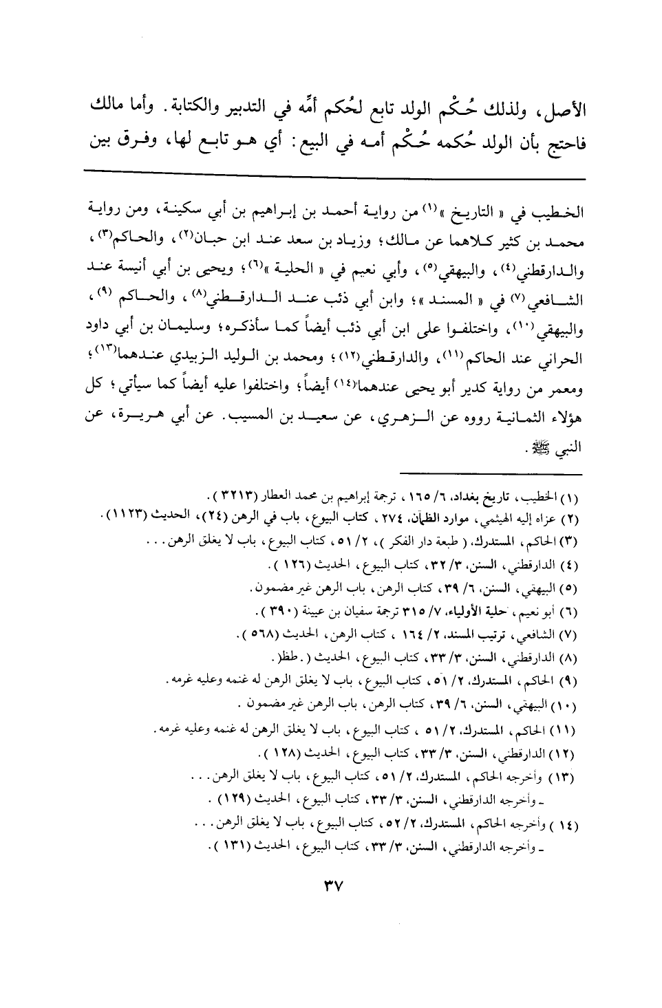 الخطيب في "التاريخ" من رواية أحمد بن إبراهيم بن أبي سكينة، ومن رواية محمد بن كثير كلاهما عن مالك؛ وزياد بن سعد عند ابن حبان، والحاكم، والدارقطني، والبيهقي، وأبي نعيم في "الحلية"، ويحيى بن أبي أنيسة عند الشافعي في "المسند"؛ وابن أبي ذئب عند الدارقطني، والحاكم، والبيهقي، واختلفوا على ابن أبي ذئب أيضًا كما سأذكره؛ وسليمان بن أبي داود الحراني عند الحاكم، والدارقطني؛ ومحمد بن الوليد الزبيدي عندهما؛ ومعمر من رواية كدير أبو يحيى عندهما أيضًا؛ واختلفوا عليه أيضًا كما سيأتي؛ كل هؤلاء الثمانية رووه عن الزهريّ، عن سعيد بن المسيب. عن أبي هريرة، عن النبي - صلى الله عليه وسلم -.