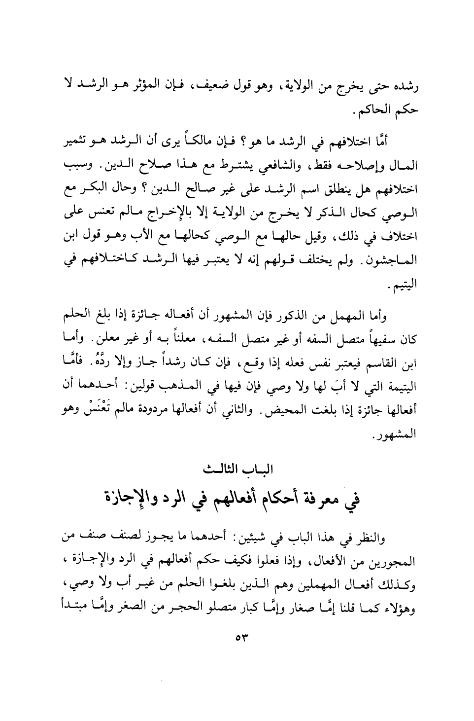 الباب الثالث: في معرفة أحكام أفعالهم في الرد والإجازة
