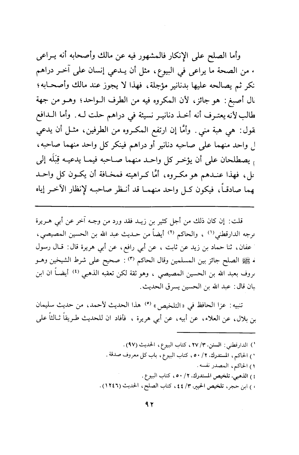 قلت: إن كان ذلك من أجل كثير بن زيد فقد ورد من وجه آخر عن أبي هريرة خرَّجه الدارقطني، والحاكم أيضًا من حديث عبد الله بن الحسين المصيصي، عفان، ثنا حماد بن زيد عن ثابت، عن أبي رافع، عن أبي هريرة قال: قال رسول الله - صلى الله عليه وسلم - الصلح جائز بين المسلمين وقال الحاكم: صحيح على شرط الشيخين وهو معروف بعبد الله بن الحسين المصيصي، وهو ثقة لكن تعقبه الذهبي أيضًا أن ابن حبان قال: عبد الله بن الحسين يسرق الحديث.
