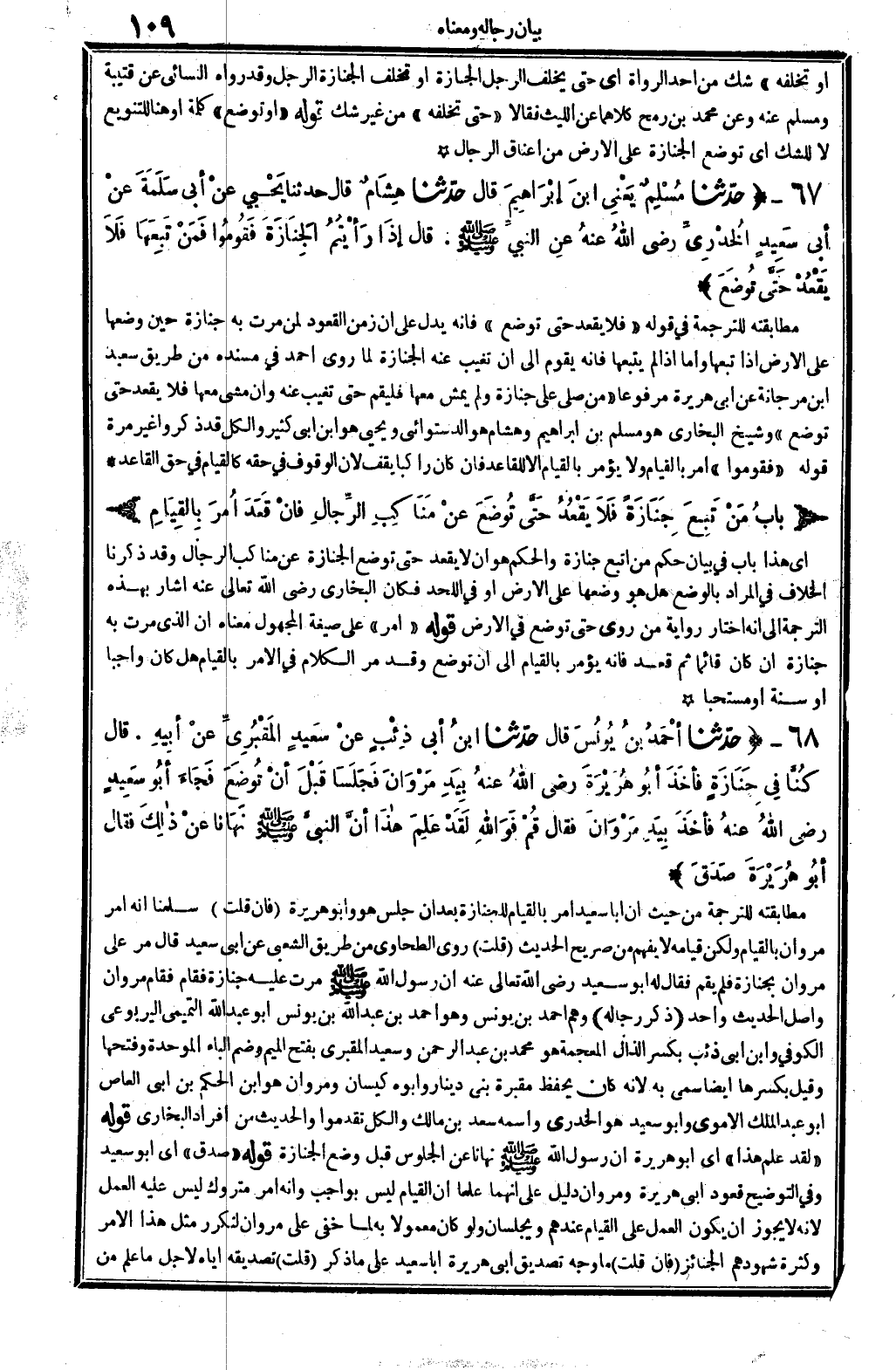 ذكر رِجَاله: وهم أَحْمد بن يُونُس وَهُوَ أَحْمد بن عبد الله بن يُونُس أَبُو عبد الله التَّمِيمِي الْيَرْبُوعي الْكُوفِي، وَابْن أبي ذِئْب، بِكَسْر الذَّال الْمُعْجَمَة: هُوَ مُحَمَّد بن عبد الرَّحْمَن، وَسَعِيد المَقْبُري، بِفَتْح الْمِيم وَضم الْبَاء الْمُوَحدَة وَفتحهَا وَقيل بِكَسْرِهَا أَيْضا: سمي بِهِ لِأَنَّهُ كَانَ يحفظ مَقْبرَة بني دِينَار، وَأَبوهُ كيسَان، ومروان هُوَ ابْن الحكم بن أبي الْعَاصِ أَبُو عبد الْملك الْأمَوِي، وَأَبُو سعيد هُوَ الْخُدْرِيّ واسْمه سعد بن مَالك، وَالْكل تقدمُوا. والْحَدِيث من أَفْرَاد البُخَارِيّ.