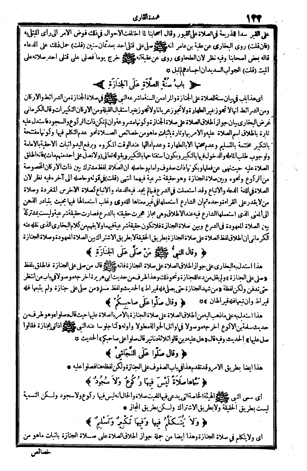 على الْقَبْر، سدا للذريعة فِي الصَّلَاة على الْقُبُور. وَقَالَ أَصْحَابنَا: لما اخْتلفت الْأَحْوَال فِي ذَلِك فوض الْأَمر إِلَى رَأْي المبتلي بِهِ. فَإِن قلت: روى البُخَارِيّ عَن عقبَة بن عَامر أَنه صلى الله عَلَيْهِ وَسلم صلى على قَتْلَى أحد بعد ثَمَان سِنِين؟ قلت: حمل ذَلِك على الدُّعَاء، قَالَه بعض أَصْحَابنَا: وَفِيه نظر، لِأَن الطَّحَاوِيّ روى عَن عقبَة أَنه صلى الله عَلَيْهِ وَسلم خرج يَوْمًا فصلى على قَتْلَى أحد صلَاته على الْمَيِّت. قلت: الْجَواب السديد أَن أَجْسَادهم لم تبل.