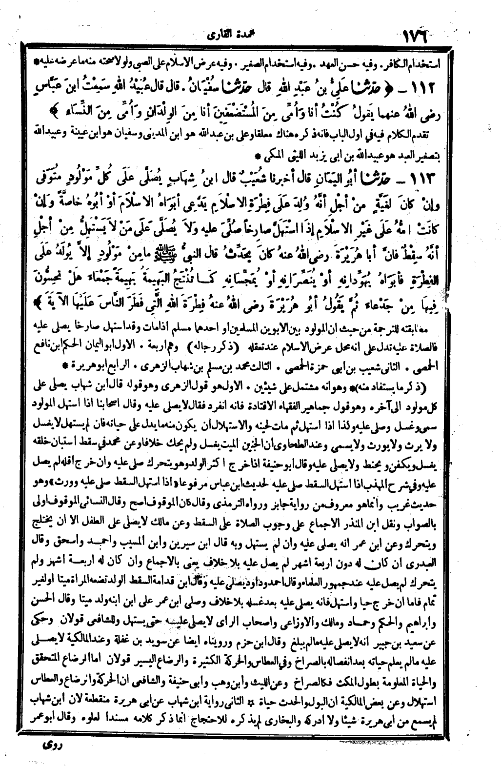 الأول: هُوَ قَول الزُّهْرِيّ، وَهُوَ قَوْله: قَالَ ابْن شهَاب: يُصلى على كل مَوْلُود ... إِلَى آخِره، وَهُوَ قَول جَمَاهِير الْفُقَهَاء إلاَّ قَتَادَة فَإِنَّهُ انْفَرد فَقَالَ: لَا يصلى عَلَيْهِ. وَقَالَ أَصْحَابنَا: إِذا اسْتهلّ الْمَوْلُود سمي وَغسل وَصلي عَلَيْهِ، وَكَذَا إِذا اسْتهلّ ثمَّ مَاتَ لحينه، والاستهلال أَن يكون مِنْهُ مَا يدل على حَيَاته فَإِن لم يستهل لَا يغسل وَلَا يَرث وَلَا يُورث وَلَا يُسمى. وَعند الطَّحَاوِيّ: إِن الْجَنِين الْمَيِّت يغسل، وَلم يحك خلافًا. وَعَن مُحَمَّد، فِي سقط استبان خلقه: يغسل ويكفن ويحنط وَلَا يصلى عَلَيْهِ، وَقَالَ أَبُو حنيفَة: إِذا خرج أَكثر الْوَلَد وَهُوَ يَتَحَرَّك صلي عَلَيْهِ، وَإِن خرج أَقَله لم يصل عَلَيْهِ. وَفِي (شرح الْمُهَذّب) : إِذا اسْتهلّ السقط صلي عَلَيْهِ لحَدِيث ابْن عَبَّاس مَرْفُوعا: (إِذا اسْتهلّ السقط صلي عَلَيْهِ وَورث) . وَهُوَ حَدِيث غَرِيب، وَإِنَّمَا هُوَ مَعْرُوف من رِوَايَة جَابر، وَرَوَاهُ التِّرْمِذِيّ، وَقَالَ: كَانَ الْمَوْقُوف أصح. وَقَالَ النَّسَائِيّ: الْمَوْقُوف أولى بِالصَّوَابِ، وَنقل ابْن الْمُنْذر الْإِجْمَاع على وجوب الصَّلَاة على السقط، وَعَن مَالك: لَا يصلى على الطِّفْل إلاَّ أَن يختلج ويتحرك، وَعَن ابْن عمر: أَنه يصلى عَلَيْهِ وَإِن لم يستهل، وَبِه قَالَ ابْن سِيرِين وَابْن الْمسيب وَأحمد وَإِسْحَاق. وَقَالَ الْعَبدَرِي: إِن كَانَ لَهُ دون أَرْبَعَة أشهر لم يصل عَلَيْهِ بِلَا خلاف، يَعْنِي: بِالْإِجْمَاع، وَإِن كَانَ لَهُ أَرْبَعَة أشهر وَلم يَتَحَرَّك لم يصل عَلَيْهِ عِنْد جُمْهُور الْعلمَاء، وَقَالَ أَحْمد وَدَاوُد: يصلى عَلَيْهِ، وَقَالَ ابْن قدامَة: السقط الْوَلَد تضعه الْمَرْأَة مَيتا أَو لغير تَمام، فَأَما إِن خرج حَيا واستهل فَإِنَّهُ يصلى عَلَيْهِ بعد غسله بِلَا خلاف، وَصلى ابْن عمر على ابْن ابْنه ولد مَيتا، وَقَالَ الْحسن وَإِبْرَاهِيم وَالْحكم وَحَمَّاد وَمَالك وَالْأَوْزَاعِيّ وَأَصْحَاب الرَّأْي: لَا يصلى عَلَيْهِ حَتَّى يستهل، وَللشَّافِعِيّ قَولَانِ، وَحكى عَن سعيد بن جُبَير أَنه: لَا يصلى عَلَيْهِ مَا لم يبلغ. وَقَالَ ابْن حزم: ورويناه أَيْضا عَن سُوَيْد بن غَفلَة، وَعند الْمَالِكِيَّة: لَا يصلى عَلَيْهِ مَا لم يعلم حَيَاته بعد انْفِصَاله بالصراخ وَفِي العطاس وَالْحَرَكَة الْكَثِيرَة وَالرّضَاع الْيَسِير، قَولَانِ. أما الرَّضَاع المتحقق والحياة الْمَعْلُومَة بطول الْمكْث فكالصراخ، وَعَن اللَّيْث وَابْن وهب وَأبي حنيفَة وَالشَّافِعِيّ: أَن الْحَرَكَة وَالرّضَاع والعطاس استهلال، وَعَن بعض الْمَالِكِيَّة: أَن الْبَوْل وَالْحَدَث حَيَاة.