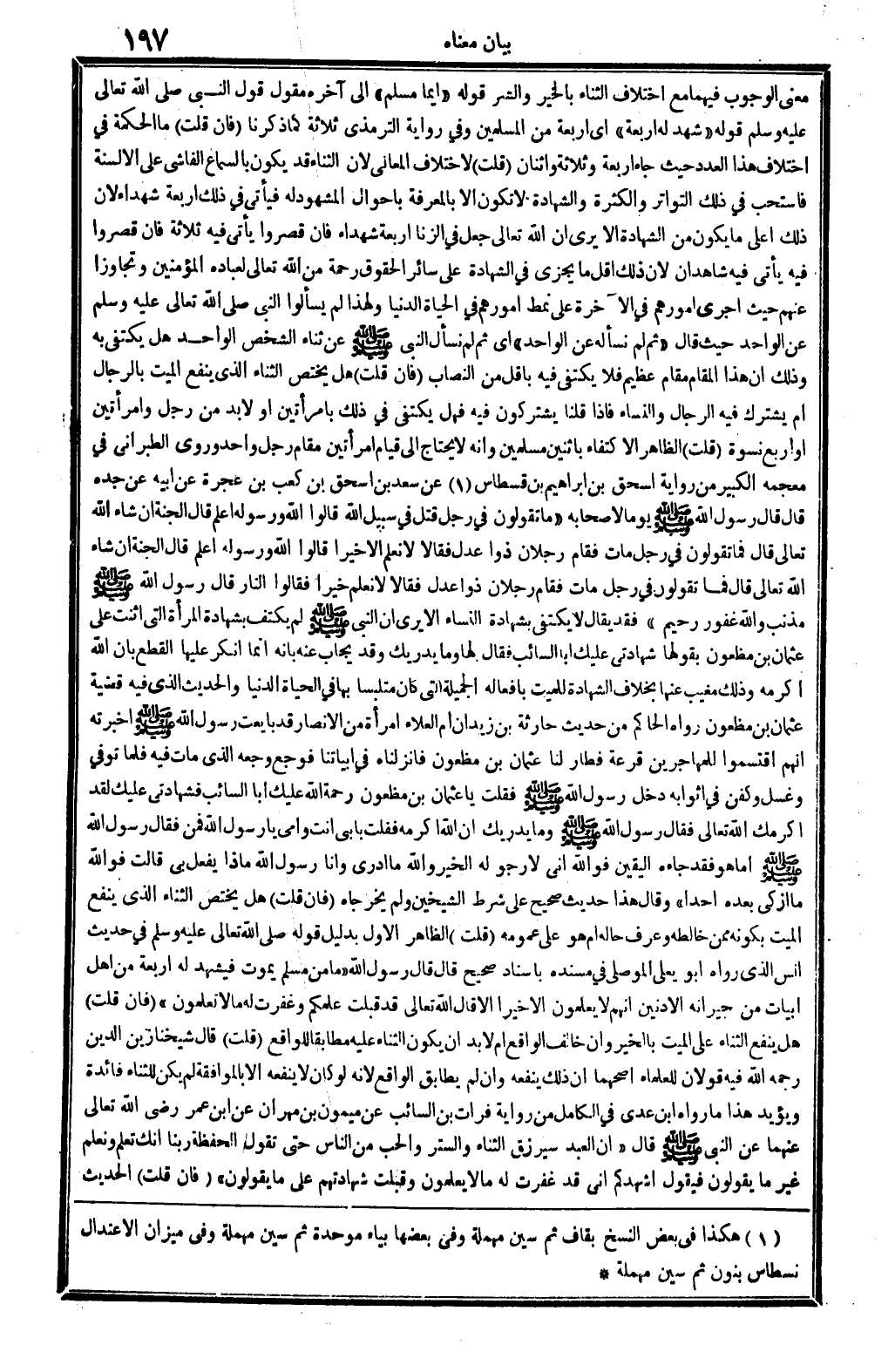 معنى الْوُجُوب فيهمَا مَعَ اخْتِلَاف الثَّنَاء بِالْخَيرِ وَالشَّر. قَوْله: (أَيّمَا مُسلم) إِلَى آخِره، مقول قَول النَّبِي، صلى الله عَلَيْهِ وَسلم، قَوْله: (شهد لَهُ أَرْبَعَة) أَي: أَرْبَعَة من الْمُسلمين، وَفِي رِوَايَة التِّرْمِذِيّ: ثَلَاثَة، كَمَا ذكرنَا. فَإِن قلت: مَا الْحِكْمَة فِي اخْتِلَاف هَذَا الْعدَد حَيْثُ جَاءَ أَرْبَعَة وَثَلَاثَة وَاثْنَانِ؟ قلت: لاخْتِلَاف الْمعَانِي، لِأَن الثَّنَاء قد يكون بِالسَّمَاعِ الفاشي على الْأَلْسِنَة فاستحب فِي ذَلِك التَّوَاتُر وَالْكَثْرَة، وَالشَّهَادَة لَا تكون إلاَّ بالمعرفة بأحوال الْمَشْهُود لَهُ، فَيَأْتِي فِي ذَلِك أَرْبَعَة شُهَدَاء، لِأَن ذَلِك أَعلَى مَا يكون من الشَّهَادَة، أَلا يرى أَن الله تَعَالَى جعل فِي الزِّنَى أَرْبَعَة شُهَدَاء، فَإِن قصروا يَأْتِي فِيهِ ثَلَاثَة، فَإِن قصروا فِيهِ يَأْتِي فِيهِ شَاهِدَانِ؟ لِأَن ذَلِك أقل مَا يَجْزِي فِي الشَّهَادَة على سَائِر الْحُقُوق رَحْمَة من الله تَعَالَى لِعِبَادِهِ الْمُؤمنِينَ، وتجاوزا عَنْهُم حَيْثُ أجْرى أُمُورهم فِي الْآخِرَة على نمط أُمُورهم فِي الْحَيَاة الدُّنْيَا، وَلِهَذَا لم يسْأَلُوا النَّبِي، صلى الله عَلَيْهِ وَسلم، عَن الْوَاحِد، حَيْثُ قَالَ: (ثمَّ لم نَسْأَلهُ عَن الْوَاحِد) أَي: ثمَّ لم نسْأَل النَّبِي صلى الله عَلَيْهِ وَسلم عَن ثَنَاء الشَّخْص الْوَاحِد: هَل يَكْتَفِي بِهِ؟ وَذَلِكَ أَن هَذَا الْمقَام مقَام عَظِيم فَلَا يَكْتَفِي فِيهِ بِأَقَلّ من النّصاب. فَإِن قلت: هَل يخْتَص الثَّنَاء الَّذِي ينفع الْمَيِّت بِالرِّجَالِ أم يشْتَرك فِيهِ الرِّجَال وَالنِّسَاء، فَإِذا قُلْنَا: يشتركون فِيهِ، فَهَل يَكْتَفِي فِي ذَلِك بامرأتين؟ أَو لَا بُد من رجل وَامْرَأَتَيْنِ أَو أَربع نسْوَة؟ قلت: الظَّاهِر الِاكْتِفَاء بِاثْنَيْنِ مُسلمين، وَإنَّهُ لَا يحْتَاج إِلَى قيام امْرَأتَيْنِ مقَام رجل وَاحِد، وروى الطَّبَرَانِيّ فِي مُعْجَمه الْكَبِير من رِوَايَة إِسْحَاق بن إِبْرَاهِيم بن قسطاس عَن سعد بن إِسْحَاق بن كَعْب بن عجْرَة عَن أَبِيه عَن جده قَالَ: قَالَ رَسُول الله صلى الله عَلَيْهِ وَسلم يَوْمًا لأَصْحَابه: (مَا تَقولُونَ فِي رجل قتل فِي سَبِيل الله؟ قَالُوا: ألله وَرَسُوله أعلم. قَالَ الْجنَّة، إِن شَاءَ الله تَعَالَى، قَالَ: فَمَا تَقولُونَ فِي رجل مَاتَ فَقَامَ رجلَانِ ذَوا عدل فَقَالَا: لَا نعلم إلاَّ خيرا؟ قَالُوا: الله وَرَسُوله أعلم. قَالَ: الْجنَّة إِن شَاءَ الله تَعَالَى، قَالَ: فَمَا تَقولُونَ فِي رجل مَاتَ فَقَامَ رجلَانِ ذَوا عدل، فَقَالَا: لَا نعلم خيرا، فَقَالُوا: النَّار، قَالَ رَسُول الله صلى الله عَلَيْهِ وَسلم: مذنب، وَالله غَفُور رَحِيم) . فقد يُقَال: لَا يكْتَفى بِشَهَادَة النِّسَاء، ألاَ يُرى أَن النَّبِي صلى الله عَلَيْهِ وَسلم لم يكتف بِشَهَادَة الْمَرْأَة الَّتِي أثنت على عُثْمَان بن مَظْعُون بقولِهَا: شهادتي عَلَيْك أَبَا السَّائِب، فَقَالَ لَهَا: وَمَا يدْريك؟ وَقد يُجَاب عَنهُ: بِأَنَّهُ إِنَّمَا أنكر عَلَيْهَا الْقطع بِأَن الله أكْرمه، وَذَلِكَ مغيب عَنْهَا، بِخِلَاف الشَّهَادَة للْمَيت بأفعاله الجميلة الَّتِي كَانَ متلبسا بهَا فِي الْحَيَاة الدُّنْيَا، والْحَدِيث الَّذِي فِيهِ قَضِيَّة عُثْمَان بن مَظْعُون رَوَاهُ الْحَاكِم من حَدِيث حَارِثَة بن زيد: أَن أم الْعَلَاء امْرَأَة من الْأَنْصَار قد بَايَعت رَسُول الله صلى الله عَلَيْهِ وَسلم أخْبرته أَنهم اقتسموا للمهاجرين قرعَة، فطار لنا عُثْمَان بن مَظْعُون فأنزلناه فِي أَبْيَاتنَا، فوجع وَجَعه الَّذِي مَاتَ فِيهِ، فَلَمَّا توفّي وَغسل وكفن فِي أثوابه دخل رَسُول الله صلى الله عَلَيْهِ وَسلم فَقلت: يَا عُثْمَان بن مَظْعُون، رَحْمَة الله عَلَيْك أَبَا السَّائِب، فشهادتي عَلَيْك، لقد أكرمك الله تَعَ