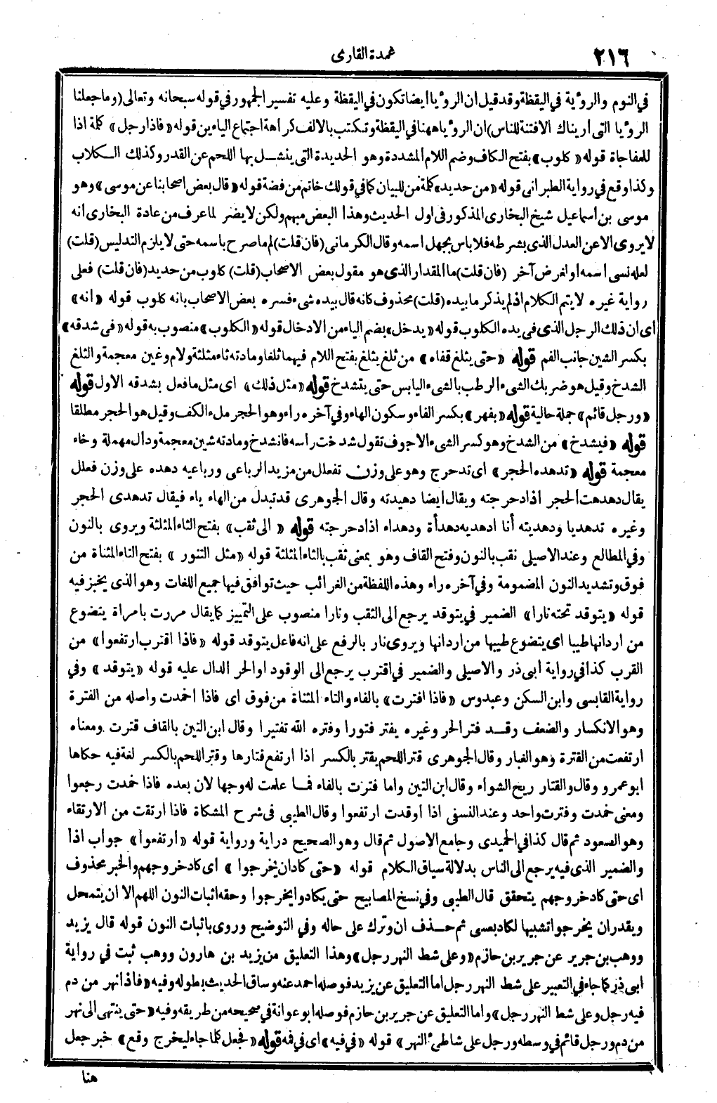 فِي النّوم، والرؤية فِي الْيَقَظَة. وَقد قيل: إِن الرُّؤْيَا أَيْضا تكون فِي الْيَقَظَة، وَعَلِيهِ تَفْسِير الْجُمْهُور فِي قَوْله سُبْحَانَهُ وَتَعَالَى: {وَمَا جعلنَا الرُّؤْيَا الَّتِي أريناك إلاَّ فتْنَة للنَّاس} (يُوسُف:) . أَن الرُّؤْيَا هَهُنَا فِي الْيَقَظَة، وتكتب بِالْألف كَرَاهَة اجْتِمَاع الياءين. قَوْله: (فَإِذا رجل) كلمة: إِذا، للمفاجأة. قَوْله: (كَلوب) ، بِفَتْح الْكَاف وَضم اللَّام الْمُشَدّدَة، وَهُوَ: الحديدة الَّتِي ينشل بهَا اللَّحْم عَن الْقدر، وَكَذَلِكَ الْكلاب، وَكَذَا وَقع فِي رِوَايَة الطَّبَرَانِيّ. قَوْله: (من حَدِيد) ، كلمة: من، للْبَيَان كَمَا فِي قَوْلك: خَاتم من فضَّة. قَوْله: (قَالَ بعض أَصْحَابنَا عَن مُوسَى) ، وَهُوَ مُوسَى بن إِسْمَاعِيل شيخ البُخَارِيّ الْمَذْكُور فِي أول الحَدِيث، وَهَذَا الْبَعْض مُبْهَم، وَلَكِن لَا يضر لما عرف من عَادَة البُخَارِيّ أَنه لَا يرْوى إلاَّ عَن الْعدْل الَّذِي بِشَرْطِهِ، فَلَا بَأْس بِجَهْل اسْمه. وَقَالَ الْكرْمَانِي: فَإِن قلت: لِمَ مَا صرح باسمه حَتَّى لَا يلْزم التَّدْلِيس؟ قلت: لَعَلَّه نسي اسْمه أَو لغَرَض آخر. فَإِن قلت: مَا الْمِقْدَار الَّذِي هُوَ مقول بعض الْأَصْحَاب؟ قلت: كَلوب من حَدِيد. فَإِن قلت: فعلى رِوَايَة غيرَة لَا يتم الْكَلَام إِذا لم يذكر مَا بِيَدِهِ؟ قلت: مَحْذُوف كَأَنَّهُ قَالَ: بِيَدِهِ شَيْء فسره بعض الْأَصْحَاب بِأَنَّهُ كَلوب. قَوْله: (أَنه) أَي: أَن ذَلِك الرجل الَّذِي فِي يَده الكلوب. قَوْله: (يدْخل) ، بِضَم الْيَاء من الإدخال. قَوْله: (الكلوب) مَنْصُوب بِهِ. قَوْله: (فِي شدقه) بِكَسْر الشين: جَانب الْفَم. قَوْله: (حَتَّى يثلغ قَفاهُ) ، من ثلغ يثلغ بِفَتْح اللَّام فيهمَا ثلغا، ومادته ثاء مُثَلّثَة وَلَام وغين مُعْجمَة، والثلغ: الشدخ. وَقيل: هُوَ ضربك الشَّيْء الرطب بالشَّيْء الْيَابِس حَتَّى يتشدخ. قَوْله: (مثل ذَلِك) أَي: مثل مَا فعل بشدقه الأول. قَوْله: (وَرجل قَائِم) ، جملَة حَالية. قَوْله: (بفهر) ، بِكَسْر الْفَاء وَسُكُون الْهَاء وَفِي آخِره رَاء: وَهُوَ الْحجر ملْء الْكَفّ. وَقيل: هُوَ الْحجر مُطلقًا. قَوْله: (فيشدخ) ، من الشدخ، وَهُوَ: كسر الشَّيْء الأجوف. تَقول: شدخت رَأسه فانشدخ، ومادته: شين مُعْجمَة ودال مُهْملَة وخاء مُعْجمَة. قَوْله: (تدهده الْحجر) أَي: تدحرج وَهُوَ على وزن: تفعلل، من مزِيد الرباعي ورباعيه: دهده، على وزن: فعلل. يُقَال: دهدهت الْحجر إِذا دحرجته. وَيُقَال: أَيْضا: دهيدته. وَقَالَ الْجَوْهَرِي: قد تبدل من الْهَاء يَاء، فَيُقَال: تدهدى الْحجر وَغَيره تدهديا، ودهديته أَنا أدهديه دهدأة ودهداء: إِذا دحرجته. قَوْله: (إِلَى ثقب) ، بِفَتْح الثَّاء الْمُثَلَّثَة ويروى بالنُّون وَفِي (الْمطَالع) : وَعند الْأصيلِيّ: نقب، بالنُّون وَفتح الْقَاف وَهُوَ بِمَعْنى: ثقب، بالثاء الْمُثَلَّثَة. قَوْله: (مثل التَّنور) ، بِفَتْح التَّاء الْمُثَنَّاة من فَوق وَتَشْديد النُّون المضمومة وَفِي آخِره رَاء، وَهَذِه اللَّفْظَة من الغرائب حَيْثُ توَافق فِيهَا جَمِيع اللُّغَات، وَهُوَ الَّذِي يخبز فِيهِ. قَوْله: (يتوقد تَحْتَهُ نَارا) ، الضَّمِير فِي يتوقد يرجع إِلَى الثقب، و: نَارا، مَنْصُوب على التَّمْيِيز كَمَا يُقَال: مَرَرْت بِامْرَأَة يتضوع من أردانها طيبا، أَي: يتضوع طيبها من أردانها. ويروى: نَار، بِالرَّفْع على أَنه فَاعل: يتوقد. قَوْله: (فَإِذا اقْترب ارتفعوا) ، من الْقرب، كَذَا فِي رِوَايَة أبي ذَر والأصيلي، وَالضَّمِير فِي اقْترب يرجع إِلَى الْوقُود أَو الْحر الدَّال عَلَيْهِ. قَوْله: (يتوقد) ، وَفِي رِوَايَة الْقَابِسِيّ وَابْن السكن وعبدوس: (فَإِذا افترت) ، بِالْفَاءِ وَالتَّاء الْمُثَنَّاة من فَوق أَي: فَإِذا أخمدت، وَأَصله من الفترة وَهُوَ الانكسار والضعف، وَقد فتر الْحر وَغَيره يفتر فتورا، وفتره الله تفتيرا. وَقَالَ ابْن التِّين: بِالْقَ