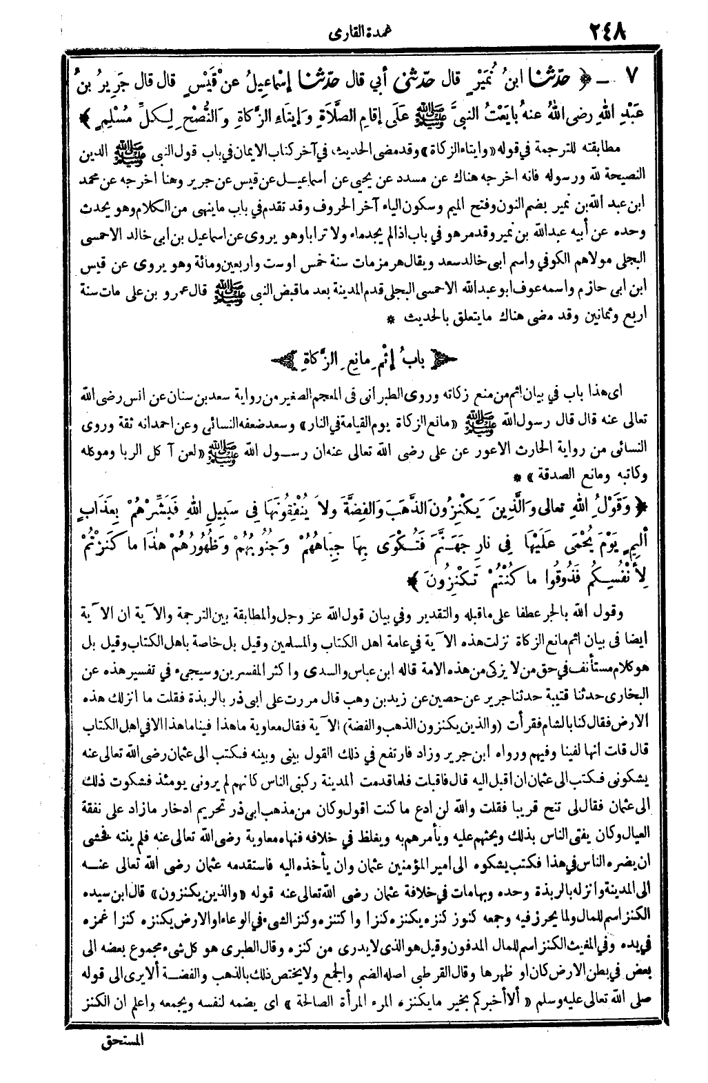 3 - (بابُ إثْمِ مانِعِ الزَّكَاةِ)