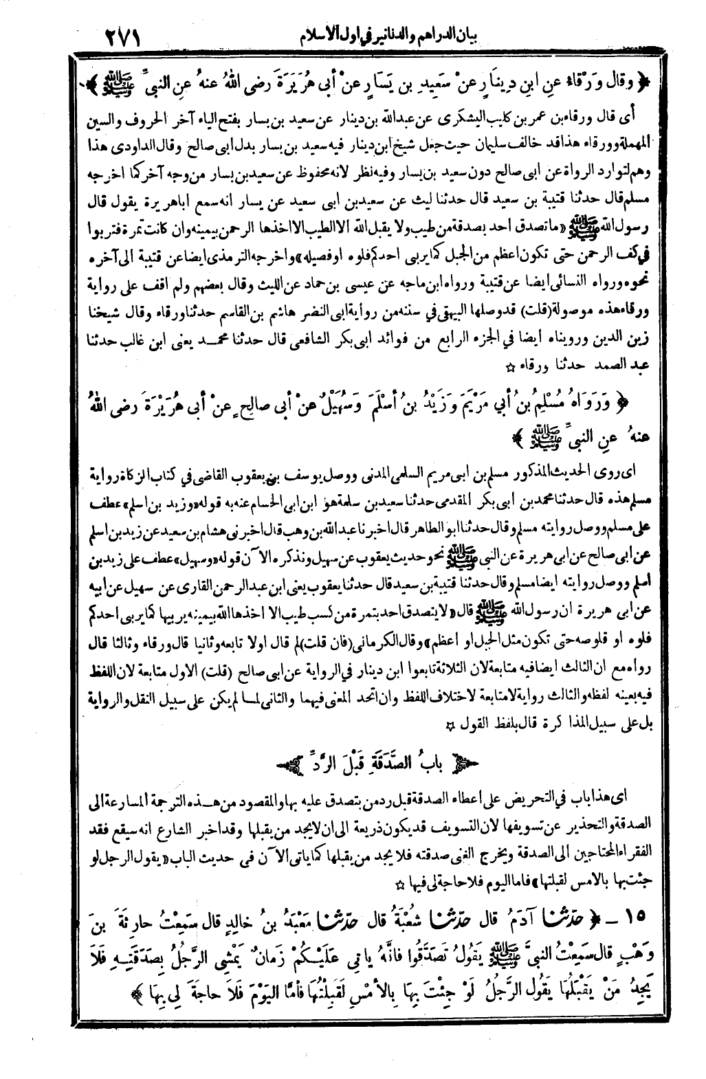 9 - (بابُ الصَّدَقَةِ قبل الرَّدِّ)