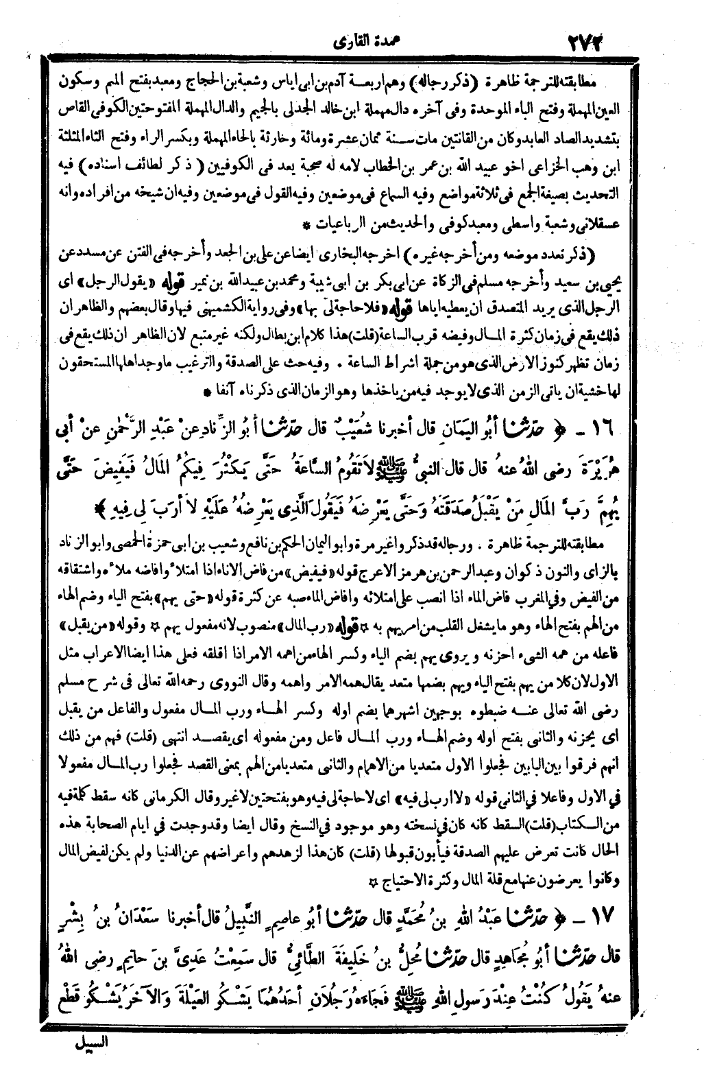 17 - (حَدثنَا عبد الله بن مُحَمَّد قَالَ حَدثنَا أَبُو عَاصِم النَّبِيل قَالَ أخبرنَا سَعْدَان بن بشر قَالَ حَدثنَا أَبُو مُجَاهِد قَالَ حَدثنَا مَحل بن خَليفَة الطَّائِي قَالَ سَمِعت عدي بن حَاتِم رَضِي الله عَنهُ يَقُول كنت عِنْد رَسُول الله - صَلَّى اللَّهُ عَلَيْهِ وَسَلَّم َ - فَجَاءَهُ رجلَانِ أَحدهمَا يشكو الْعيلَة وَالْآخر يشكو قطع