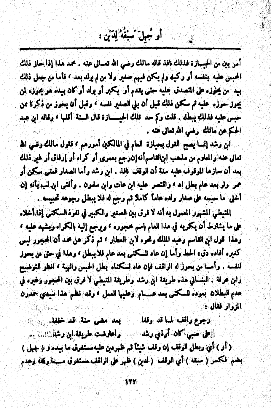 عَلَى صَبِيٍّ كَانَ أَوْ ذِي رُشْدِ ... وَاعْتَرَضَتْ طَرِيقَةُ ابْنِ رُشْدِ