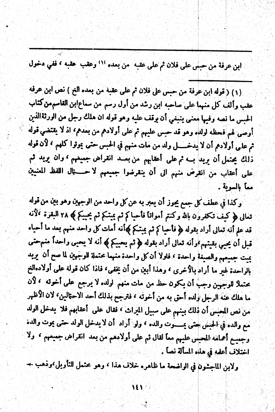 ـــــــــــــــــــــــــــــQابْنُ عَرَفَةَ مَنْ حَبَّسَ عَلَى فُلَانٍ ثُمَّ عَلَى عَقِبِهِ مِنْ بَعْدِهِ وَعَقِبِ عَقِبِهِ، فَفِي دُخُولِ