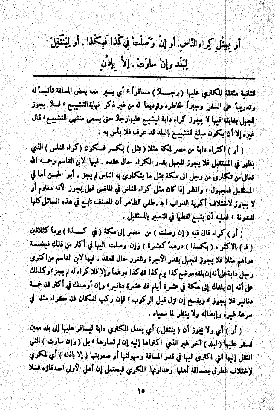 ـــــــــــــــــــــــــــــQالثَّانِيَةِ مُثَقَّلَةً الْمُكْتَرِي عَلَيْهَا (رَجُلًا) مُسَافِرًا، أَيْ يَسِيرُ مَعَهُ بَعْضَ الْمَسَافَةِ تَأْنِيسًا لَهُ وَتَدْرِيبًا عَلَى السَّفَرِ وَجَبْرًا لِخَاطِرِهِ وَتَوْدِيعًا لَهُ مِنْ غَيْرِ ذِكْرِ نِهَايَةِ التَّشْيِيعِ، فَلَا يَجُوزُ لِلْجَهْلِ بِغَايَتِهِ فِيهَا لَا يَجُوزُ كِرَاءُ دَابَّةٍ لِيُشَيِّعَ عَلَيْهَا رَجُلًا حَتَّى يُسَمِّيَ مُنْتَهَى التَّشْيِيعِ، قَالَ غَيْرُهُ إلَّا أَنْ يَكُونَ مَبْلَغُ التَّشْيِيعِ؛ بِالْبَلَدِ قَدْ عُرِفَ فَلَا بَأْسَ بِهِ.