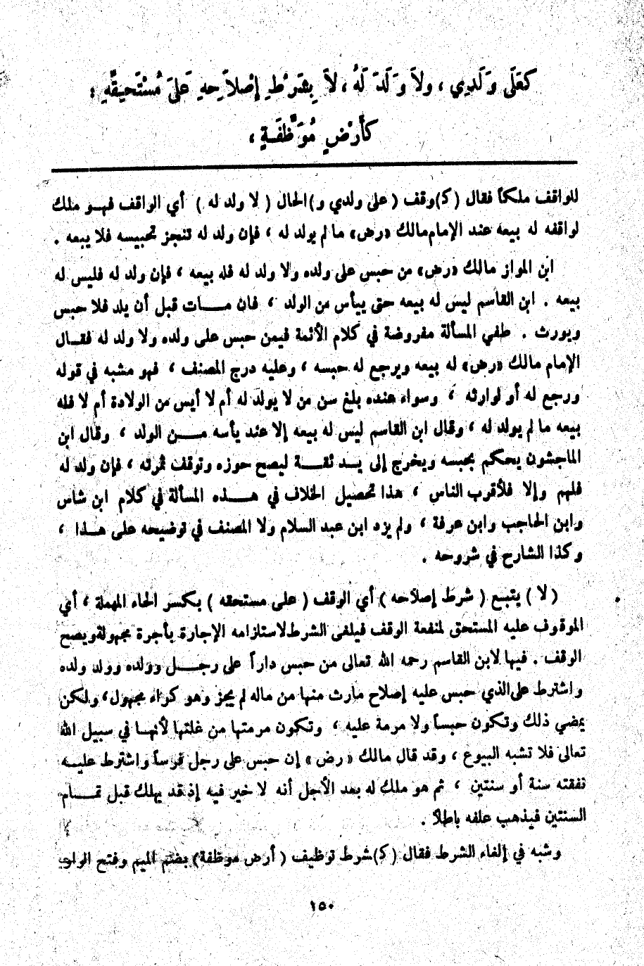 وَشَبَّهَ فِي إلْغَاءِ الشَّرْطِ فَقَالَ (كَ) شَرْطِ تَوْظِيفِ (أَرْضِ مُوَظَّفَةٍ) بِضَمِّ الْمِيمِ وَفَتْحِ الْوَاوِ