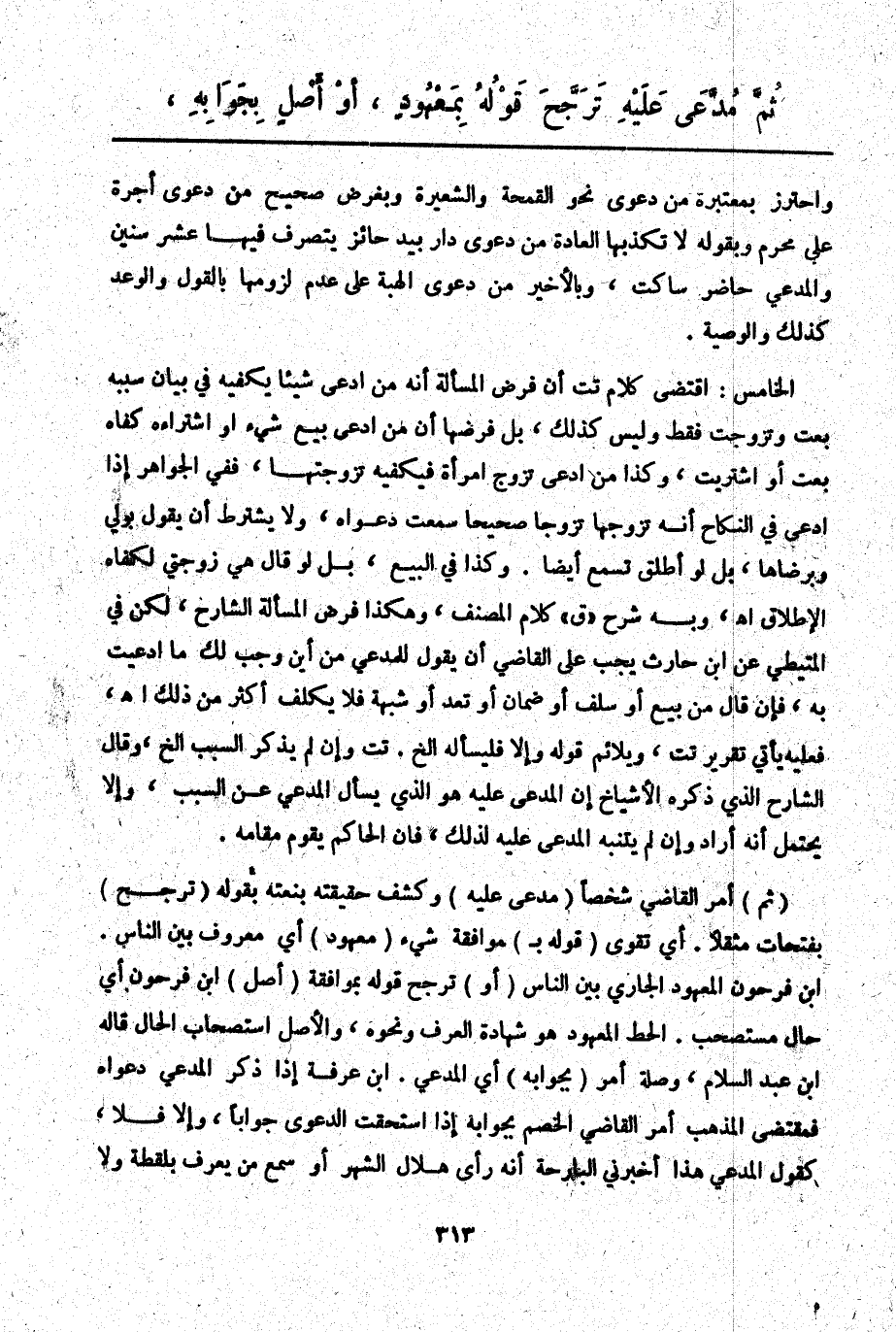 (ثُمَّ) أَمَرَ الْقَاضِي شَخْصًا (مُدَّعًى عَلَيْهِ) وَكَشَفَ حَقِيقَتَهُ بِنَعْتِهِ بِقَوْلِهِ (تَرَجَّحَ) بِفَتَحَاتٍ مُثَقَّلًا. أَيْ تَقَوَّى (قَوْلُهُ بِ) مُوَافَقَةِ شَيْءٍ (مَعْهُودٍ) أَيْ مَعْرُوفٍ بَيْنَ النَّاسِ. ابْنُ فَرْحُونٍ الْمَعْهُودُ الْجَارِي بَيْنَ النَّاسِ (أَوْ) تَرَجَّحَ قَوْلُهُ بِمُوَافَقَةِ (أَصْلٍ) ابْنُ فَرْحُونٍ أَيْ حَالٍ مُسْتَصْحَبٍ. الْحَطّ الْمَعْهُودُ هُوَ شَهَادَةُ الْعُرْفِ وَنَحْوِهِ وَالْأَصْلُ اسْتِصْحَابُ الْحَالِ قَالَهُ ابْنُ عَبْدِ السَّلَامِ، وَصِلَةُ أَمَرَ (بِجَوَابِهِ) أَيْ الْمُدَّعِي. ابْنُ عَرَفَةَ إذَا ذَكَرَ الْمُدَّعِي دَعْوَاهُ فَمُقْتَضَى الْمَذْهَبِ أَمَرَ الْقَاضِي الْخَصْمَ بِجَوَابِهِ إذَا اسْتَحَقَّتْ الدَّعْوَى جَوَابًا، وَإِلَّا فَلَا، كَقَوْلِ الْمُدَّعِي هَذَا أَخْبَرَنِي الْبَارِحَةَ أَنَّهُ رَأَى هِلَالَ الشَّهْرِ أَوْ سَمِعَ مَنْ يُعَرِّفُ بِلُقَطَةٍ وَلَا