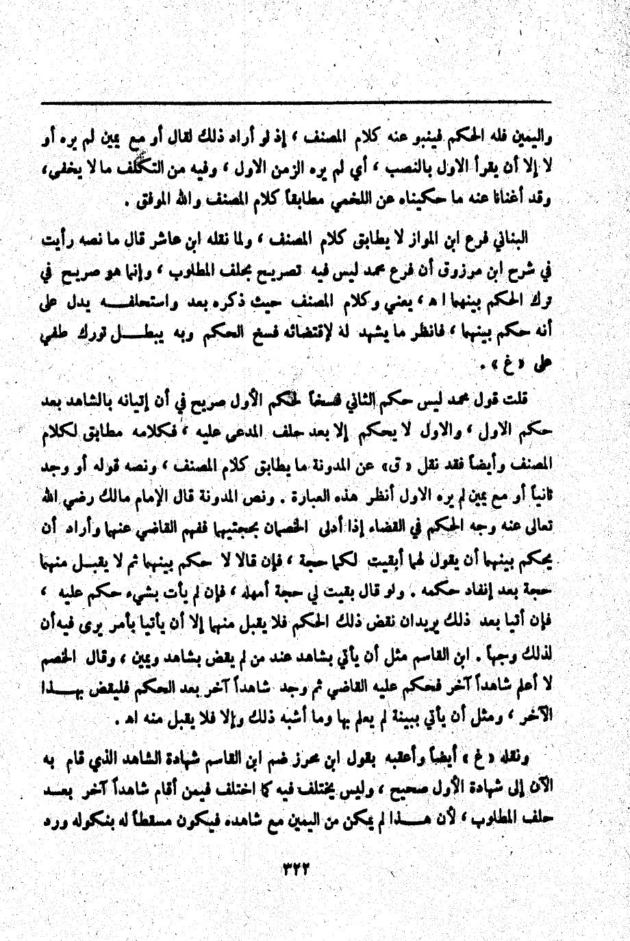 قُلْت قَوْلُ مُحَمَّدٍ لَيْسَ حُكْمُ الثَّانِي فَسْخًا لِحُكْمِ الْأَوَّلِ صَرِيحٌ فِي أَنَّ إتْيَانَهُ بِالشَّاهِدِ بَعْدَ حُكْمِ الْأَوَّلِ، وَالْأَوَّلُ لَا يَحْكُمُ إلَّا بَعْدَ حَلِفِ الْمُدَّعَى عَلَيْهِ، فَكَلَامُهُ مُطَابِقٌ لِكَلَامِ الْمُصَنِّفِ وَأَيْضًا فَقَدْ نَقَلَ " ق " عَنْ الْمُدَوَّنَةِ مَا يُطَابِقُ كَلَامَ الْمُصَنِّفِ، وَنَصُّهُ قَوْلُهُ أَوْ وَجَدَ ثَانِيًا أَوْ مَعَ يَمِينٍ لَمْ يَرَهُ الْأَوَّلُ اُنْظُرْ هَذِهِ الْعِبَارَةَ. وَنَصُّ الْمُدَوَّنَةِ قَالَ الْإِمَامُ مَالِكٌ - رَضِيَ اللَّهُ تَعَالَى عَنْهُ - وَجْهُ الْحُكْمِ فِي الْقَضَاءِ إذَا أَدْلَى الْخَصْمَانِ بِحُجَّتَيْهِمَا فَفَهِمَ الْقَاضِي عَنْهُمَا وَأَرَادَ أَنْ يَحْكُمَ بَيْنَهُمَا أَنْ يَقُولَ لَهُمَا أَبْقَيْت لَكُمَا حُجَّةً، فَإِنْ قَالَا لَا حُكْمَ بَيْنَهُمَا ثُمَّ لَا يَقْبَلُ مِنْهُمَا حُجَّةً بَعْدَ إنْفَاذِ حُكْمِهِ. وَلَوْ قَالَ بَقِيَتْ لِي حُجَّةٌ أَمْهَلَهُ، فَإِنْ لَمْ يَأْتِ بِشَيْءٍ حَكَمَ عَلَيْهِ، فَإِنْ أَتَيَا بَعْدَ ذَلِكَ يُرِيدَانِ نَقْضَ ذَلِكَ الْحُكْمِ فَلَا يُقْبَلُ مِنْهُمَا إلَّا أَنْ يَأْتِيَا بِأَمْرٍ يَرَى فِيهِ أَنَّ لِذَلِكَ وَجْهًا. ابْنُ الْقَاسِمِ مِثْلَ أَنْ يَأْتِيَ بِشَاهِدٍ عِنْدَ مَنْ لَمْ يَقْضِ بِشَاهِدٍ وَيَمِينٍ، وَقَالَ الْخَصْمُ لَا أَعْلَمُ شَاهِدًا آخَرَ فَحَكَمَ عَلَيْهِ الْقَاضِي ثُمَّ وَجَدَ شَاهِدًا آخَرَ بَعْدَ الْحُكْمِ فَلْيَقْضِ بِهَذَا الْآخَرِ، وَمِثْلَ أَنْ يَأْتِيَ بِبَيِّنَةٍ لَمْ يَعْلَمْ بِهَا وَمَا أَشْبَهَ ذَلِكَ وَإِلَّا فَلَا يُقْبَلُ مِنْهُ اهـ.