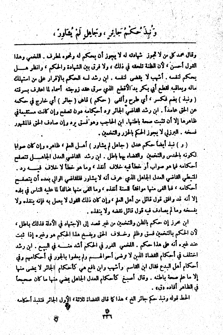 وَنُبِذَ حُكْمُ جَائِرٍ، وَجَاهِلٍ لَمْ يُشَاوِرْ،