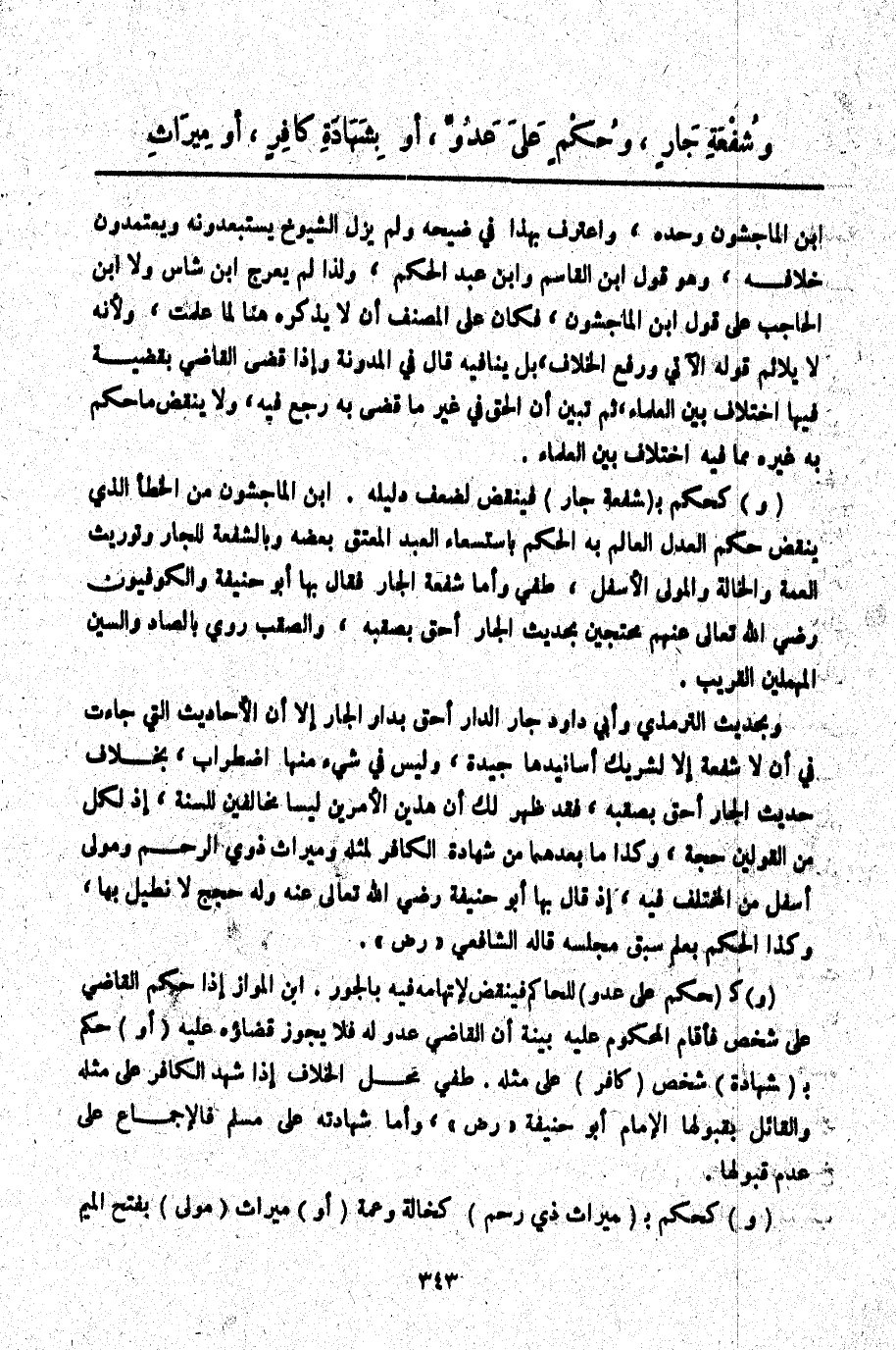 وَشُفْعَةِ جَارٍ، وَحُكْمٍ عَلَى عَدُوٍّ، أَوْ بِشَهَادَةِ كَافِرٍ، أَوْ مِيرَاثِ