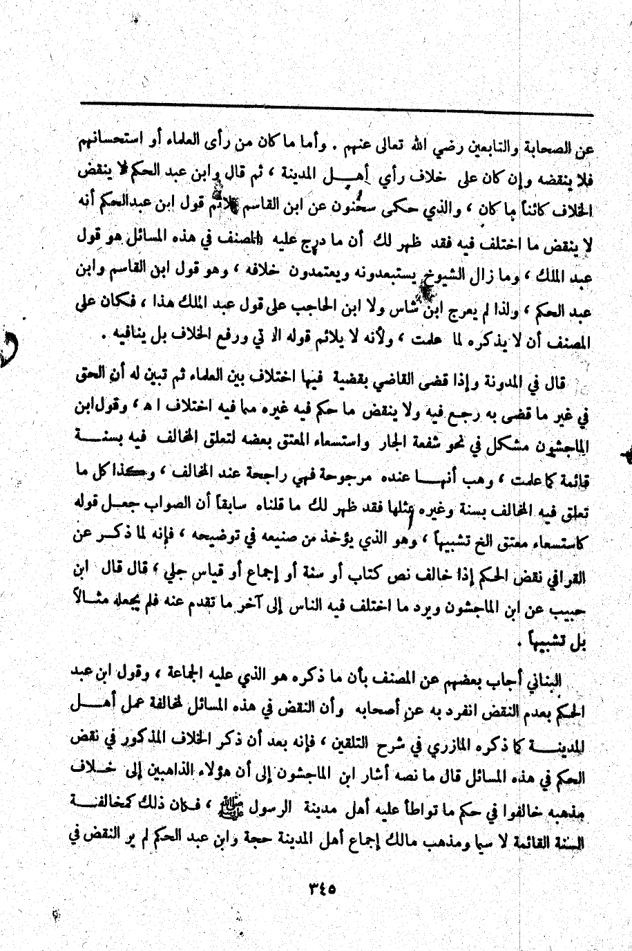 ـــــــــــــــــــــــــــــQعَنْ الصَّحَابَةِ وَالتَّابِعِينَ - رَضِيَ اللَّهُ تَعَالَى عَنْهُمْ -. وَأَمَّا مَا كَانَ مِنْ رَأْيِ الْعُلَمَاءِ أَوْ اسْتِحْسَانِهِمْ فَلَا يَنْقُضُهُ وَإِنْ كَانَ عَلَى خِلَافِ رَأْيِ أَهْلِ الْمَدِينَةِ، ثُمَّ قَالَ وَابْنُ عَبْدِ الْحَكَمِ لَا يُنْقَضُ الْخِلَافُ كَائِنًا مَا كَانَ، وَاَلَّذِي حَكَى سَحْنُونٌ عَنْ ابْنِ الْقَاسِمِ يُلَائِمُ قَوْلَ ابْنِ عَبْدِ الْحَكَمِ أَنَّهُ لَا يُنْقَضُ مَا اُخْتُلِفَ فِيهِ فَقَدْ ظَهَرَ لَك أَنَّ مَا دَرَج عَلَيْهِ الْمُصَنِّفُ فِي هَذِهِ الْمَسَائِلِ هُوَ قَوْلُ عَبْدِ الْمَلِكِ، وَمَا زَالَ الشُّيُوخُ يَسْتَبْعِدُونَهُ وَيَعْتَمِدُونَ خِلَافَهُ، وَهُوَ قَوْلُ ابْنِ الْقَاسِمِ وَابْنِ عَبْدِ الْحَكَمِ، وَلِذَا لَمْ يُعَرِّجْ ابْنُ شَاسٍ وَلَا ابْنُ الْحَاجِبِ عَلَى قَوْلِ عَبْدِ الْمَلِكِ هَذَا، فَكَانَ عَلَى الْمُصَنِّفِ أَنْ لَا يَذْكُرَهُ لِمَا عَلِمْت، وَلِأَنَّهُ لَا يُلَائِمُ قَوْلَهُ الْآتِيَ وَرَفْعُ الْخِلَافِ بَلْ يُنَافِيهِ.