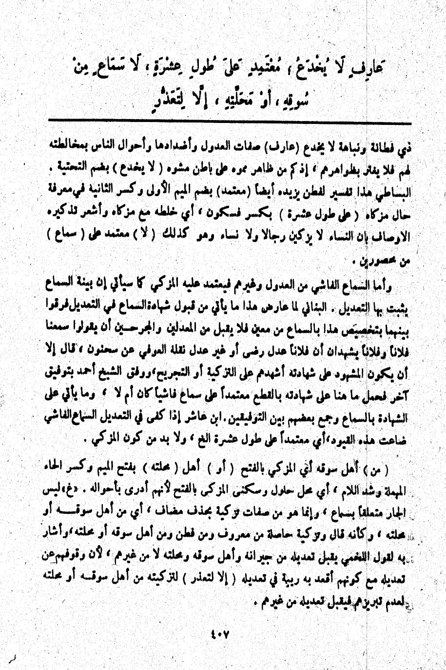 عَارِفٍ لَا يُخْدَعُ؛ مُعْتَمِدٍ عَلَى طُولِ عِشْرَةٍ، لَا سَمَاعٍ مِنْ سُوقِهِ، أَوْ مَحَلَّتِهِ، إلَّا لِتَعَذُّرٍ