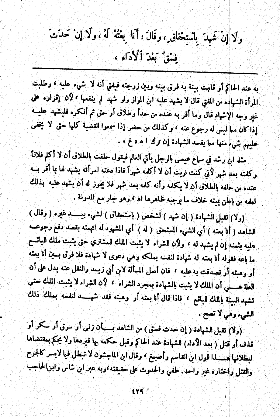 (وَلَا) تُقْبَلُ الشَّهَادَةُ (إنْ حَدَثَ فِسْقٌ) مِنْ الشَّاهِدِ بِأَنْ زَنَى أَوْ سَرَقَ أَوْ سَكِرَ أَوْ قَذَفَ أَوْ قَتَلَ (بَعْدَ الْأَدَاءِ) لِلشَّهَادَةِ عِنْدَ الْحَاكِمِ وَقَبْلَ حُكْمِهِ بِهَا فَيَرُدُّهَا وَلَا يَحْكُمُ بِمُقْتَضَاهَا لِبُطْلَانِهَا هَذَا قَوْلُ ابْنِ الْقَاسِمِ وَأَصْبَغَ، وَقَالَ ابْنُ الْمَاجِشُونِ لَا تَبْطُلُ فِيمَا لَا يُسَرُّ كَالْجَرْحِ وَالْقَتْلِ وَاخْتَارَهُ غَيْرُ وَاحِدٍ. طفى وَالْحُدُوثُ عَلَى حَقِيقَتِهِ، وَبِهِ عَبَّرَ ابْنُ شَاسٍ وَابْنُ الْحَاجِبِ