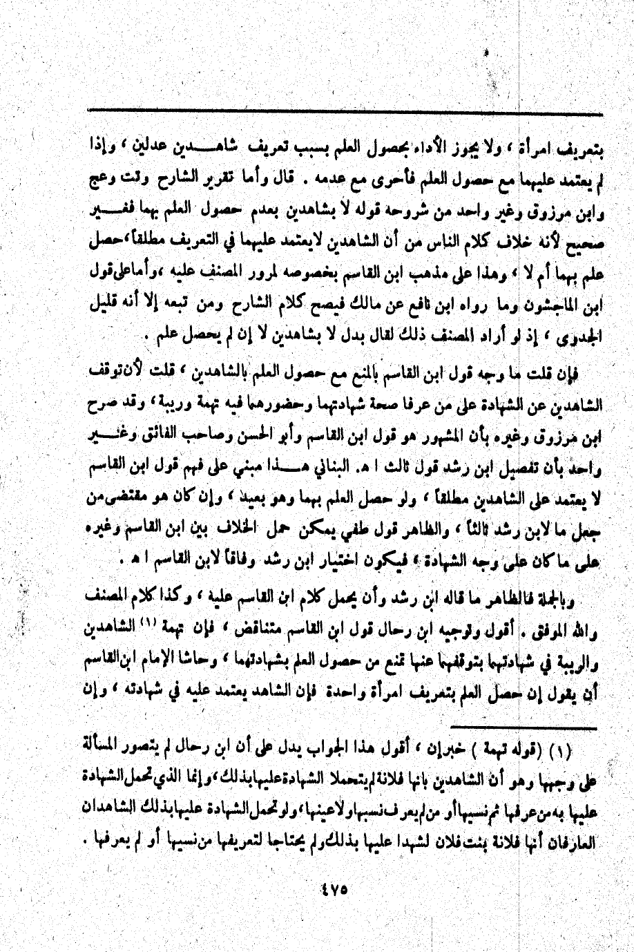 وَبِالْجُمْلَةِ فَالظَّاهِرُ مَا قَالَهُ ابْنُ رُشْدٍ وَأَنْ يُحْمَلَ كَلَامُ ابْنِ الْقَاسِمِ عَلَيْهِ، وَكَذَا كَلَامُ الْمُصَنِّفِ وَاَللَّهُ الْمُوَفِّقُ. أَقُولُ وَتَوْجِيهُ ابْنِ رَحَّالٍ قَوْلَ ابْنِ الْقَاسِمِ مُتَنَاقِضٌ، فَإِنَّ تُهْمَةَ الشَّاهِدَيْنِ وَالرِّيبَةَ فِي شَهَادَتِهِمَا بِتَوَقُّفِهِمَا عَنْهَا تَمْنَعُ مِنْ حُصُولِ الْعِلْمِ بِشَهَادَتِهِمَا، وَحَاشَا الْإِمَامُ ابْنُ الْقَاسِمِ أَنْ يَقُولَ إنْ حَصَلَ الْعِلْمُ بِتَعْرِيفِ امْرَأَةٍ وَاحِدَةٍ فَإِنَّ الشَّاهِدَ يَعْتَمِدُ عَلَيْهِ فِي شَهَادَتِهِ، وَإِنْ