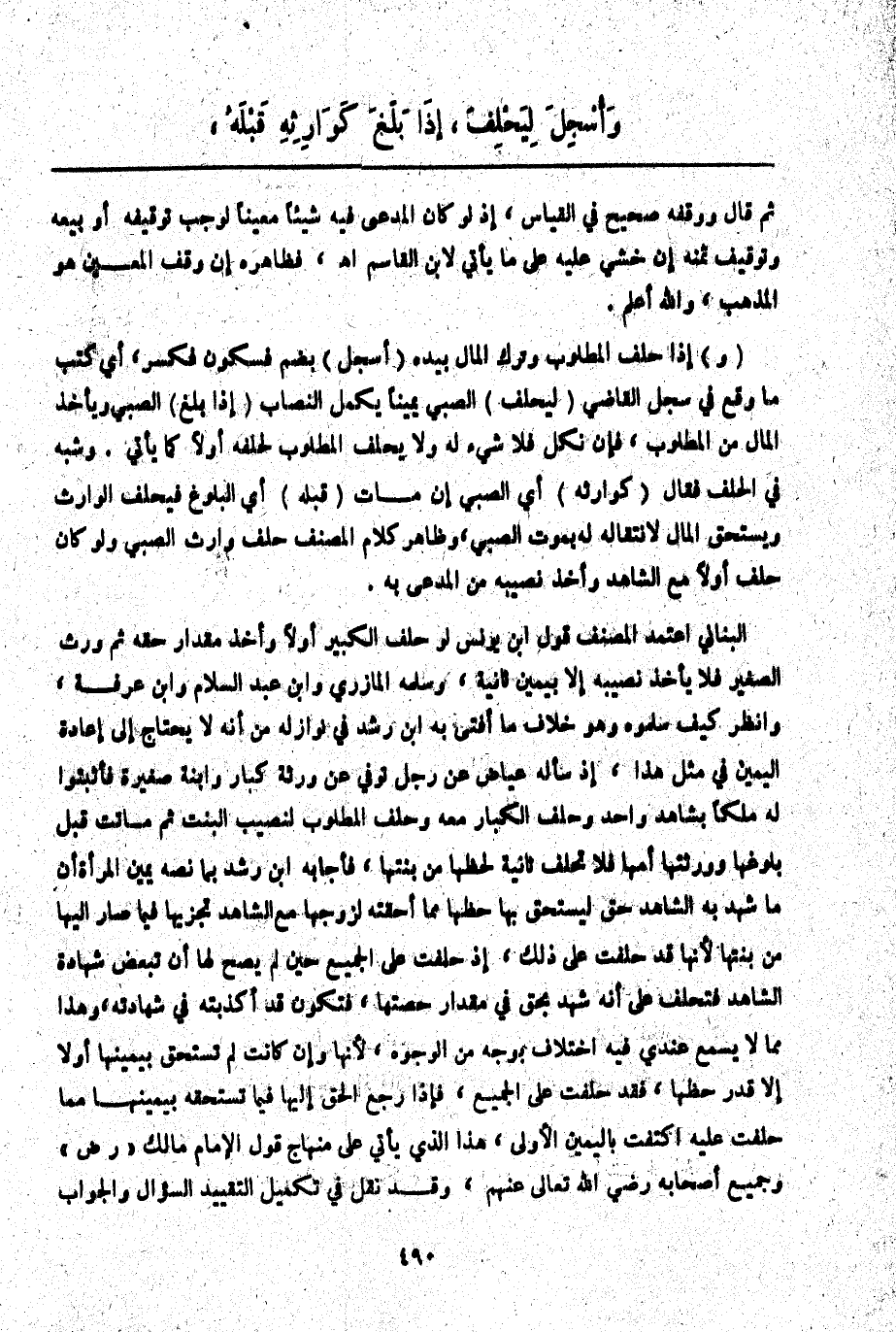 وَأُسْجِلَ لِيَحْلِفَ، إذَا بَلَغَ كَوَارِثِهِ قَبْلَهُ،