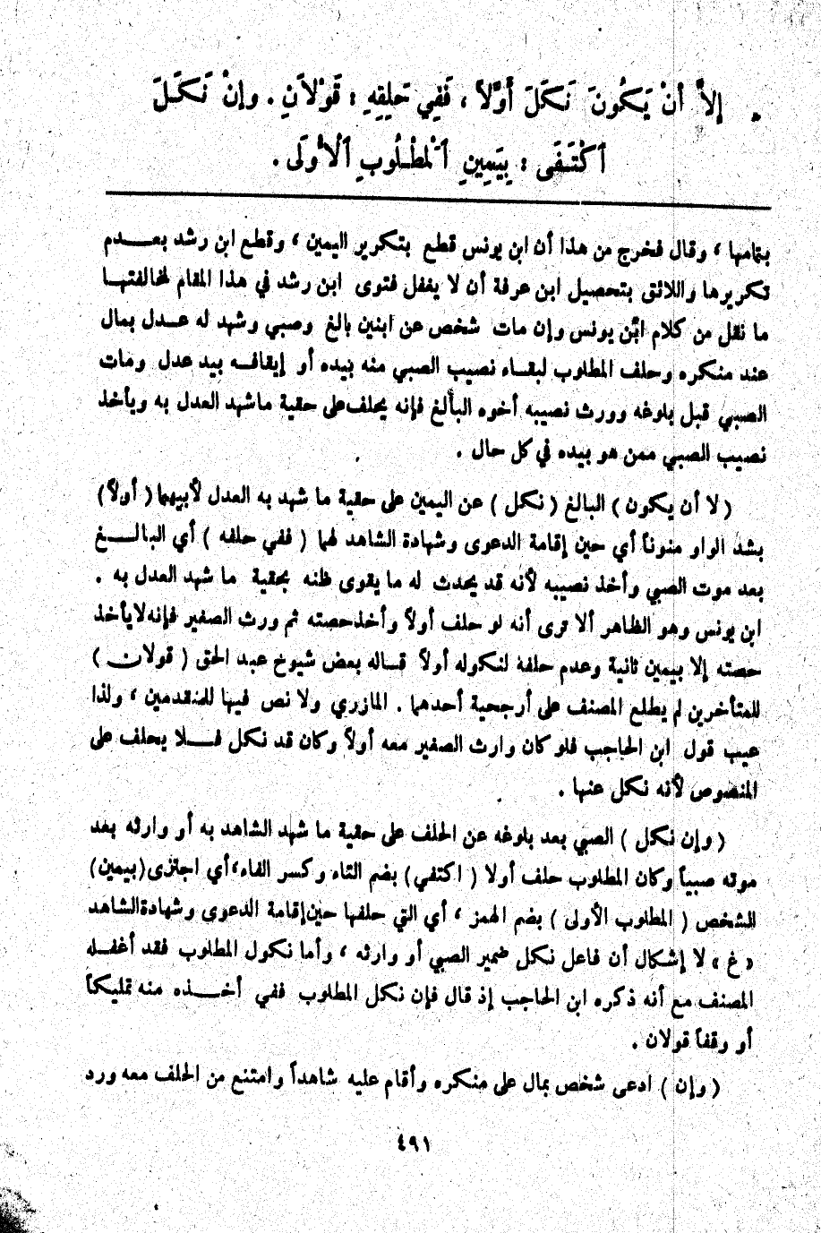 وَقَالَ فَخَرَجَ مِنْ هَذَا أَنَّ ابْنَ يُونُسَ قَطَعَ بِتَكْرِيرِ الْيَمِينِ، وَقَطَعَ ابْنُ رُشْدٍ بِعَدَمِ تَكْرِيرِهَا وَاللَّائِقُ بِتَحْصِيلِ ابْنِ عَرَفَةَ أَنْ لَا يُغْفَلَ فَتْوَى ابْنِ رُشْدٍ فِي هَذَا الْمَقَامِ لِمُخَالَفَتِهَا مَا نُقِلَ مِنْ كَلَامِ ابْنِ يُونُسَ وَإِنْ مَاتَ شَخْصٌ عَنْ ابْنَيْنِ بَالِغٍ وَصَبِيٍّ وَشَهِدَ لَهُ عَدْلٌ بِمَالٍ عِنْدَ مُنْكِرِهِ وَحَلَفَ الْمَطْلُوبُ لِبَقَاءِ نَصِيبِ الصَّبِيِّ مِنْهُ بِيَدِهِ أَوْ إيقَافِهِ بِيَدِ عَدْلٍ وَمَاتَ الصَّبِيُّ قَبْلَ بُلُوغِهِ وَوَرِثَ نَصِيبَهُ أَخُوهُ الْبَالِغُ فَإِنَّهُ يَحْلِفُ عَلَى حَقِّيَّةَ مَا شَهِدَ الْعَدْلُ بِهِ وَيَأْخُذُ نَصِيبَ الصَّبِيِّ مِمَّنْ هُوَ بِيَدِهِ فِي كُلِّ حَالٍ. (لَا أَنْ يَكُونَ) الْبَالِغُ (نَكَلَ) عَنْ الْيَمِينِ عَلَى حَقِّيَّةَ مَا شَهِدَ بِهِ الْعَدْلُ لِأَبِيهِمَا (أَوَّلًا) بِشَدِّ الْوَاوِ مُنَوَّنًا أَيْ حِينَ إقَامَةِ الدَّعْوَى وَشَهَادَةِ الشَّاهِدِ لَهُمَا (فَفِي حَلِفِهِ) أَيْ الْبَالِغِ بَعْدَ مَوْتِ الصَّبِيِّ وَأَخْذِ نَصِيبِهِ؛ لِأَنَّهُ قَدْ يَحْدُثُ لَهُ مَا يُقَوِّي ظَنَّهُ بِحَقِّيَّةِ مَا شَهِدَ الْعَدْلُ بِهِ. ابْنُ يُونُسَ وَهُوَ الظَّاهِرُ أَلَا تَرَى أَنَّهُ لَوْ حَلَفَ أَوَّلًا وَأَخَذَ حِصَّتَهُ ثُمَّ وَرِثَ الصَّغِيرُ فَإِنَّهُ لَا يَأْخُذُ حِصَّتَهُ إلَّا بِيَمِينٍ ثَانِيَةٍ وَعَدَمُ حَلِفِهِ لِنُكُولِهِ أَوَّلًا قَالَهُ بَعْضُ شُيُوخِ عَبْدِ الْحَقِّ (قَوْلَانِ) لِلْمُتَأَخِّرِينَ لَمْ يَطَّلِعْ الْمُصَنِّفُ عَلَى أَرْجَحِيَّةِ أَحَدِهِمَا. الْمَازِرِيُّ وَلَا نَصَّ فِيهَا لِلْمُتَقَدِّمِينَ، وَلِذَا عِيبَ قَوْلُ ابْنِ الْحَاجِبِ فَلَوْ كَانَ وَارِثُ الصَّغِيرِ مَعَهُ أَوَّلًا وَكَانَ قَدْ نَكَلَ لَا يَحْلِفُ عَلَى الْمَنْصُوصِ؛ لِأَنَّهُ نَكَلَ عَنْهَا.