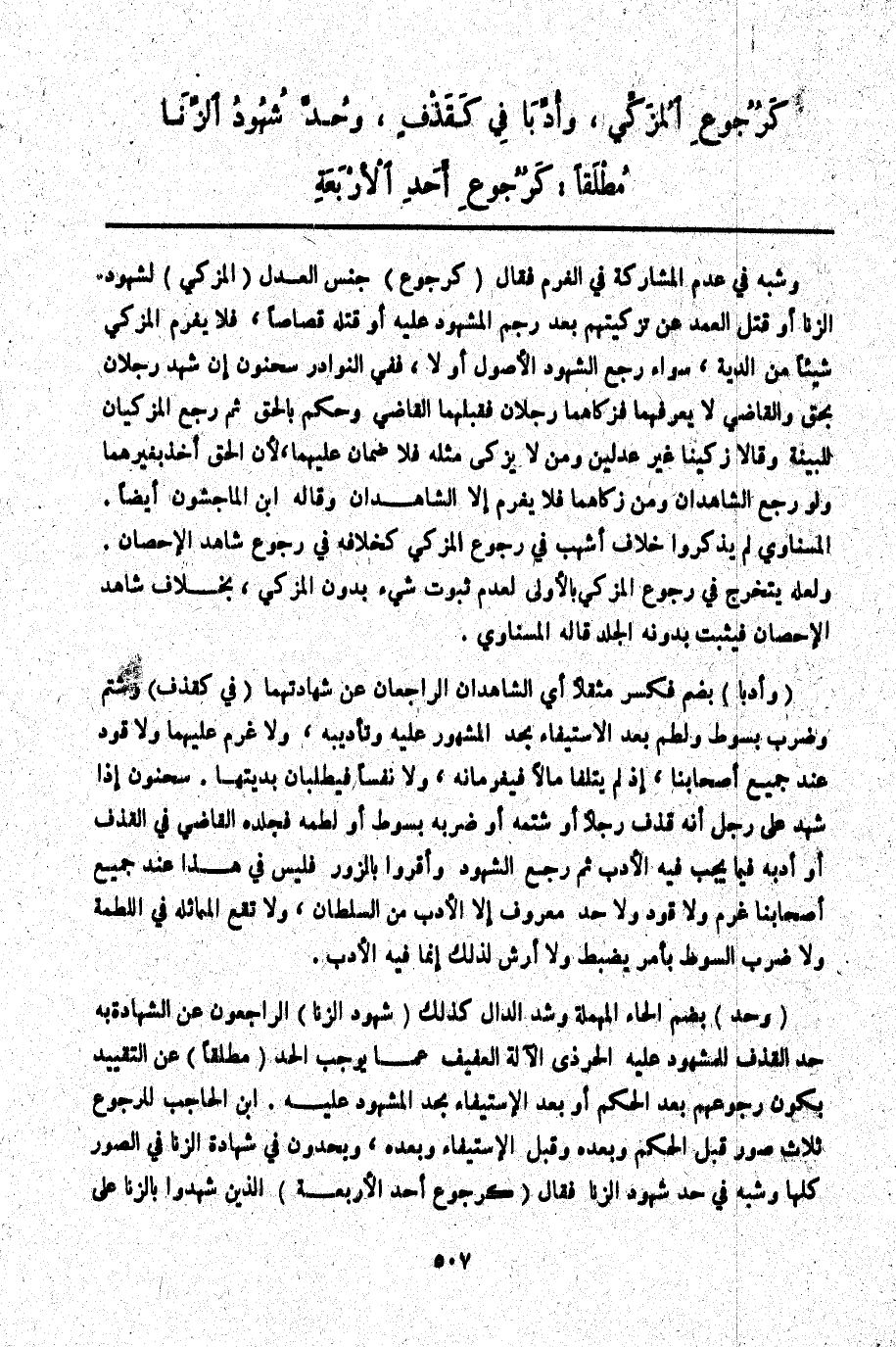 (وَحُدَّ) بِضَمِّ الْحَاءِ الْمُهْمَلَةِ وَشَدِّ الدَّالِ كَذَلِكَ (شُهُودُ الزِّنَا) الرَّاجِعُونَ عَنْ الشَّهَادَةِ بِهِ حَدَّ الْقَذْفِ لِلْمَشْهُودِ عَلَيْهِ الْحُرِّ ذِي الْآلَةِ الْعَفِيفِ عَمَّا يُوجِبُ الْحَدَّ (مُطْلَقًا) عَنْ التَّقْيِيدِ بِكَوْنِ رُجُوعِهِمْ بَعْدَ الْحُكْمِ أَوْ بَعْدَ الِاسْتِيفَاءِ بِحَدِّ الْمَشْهُودِ عَلَيْهِ. ابْنُ الْحَاجِبِ لِلرُّجُوعِ ثَلَاثُ صُوَرٍ قَبْلَ الْحُكْمِ وَبَعْدَهُ وَقَبْلَ الِاسْتِيفَاءِ وَبَعْدَهُ، وَيُحَدُّونَ فِي شَهَادَةِ الزِّنَا فِي الصُّوَرِ كُلِّهَا وَشَبَّهَ فِي حَدِّ شُهُودِ الزِّنَا فَقَالَ (كَرُجُوعِ أَحَدِ الْأَرْبَعَةِ) الَّذِينَ شَهِدُوا بِالزِّنَا عَلَى