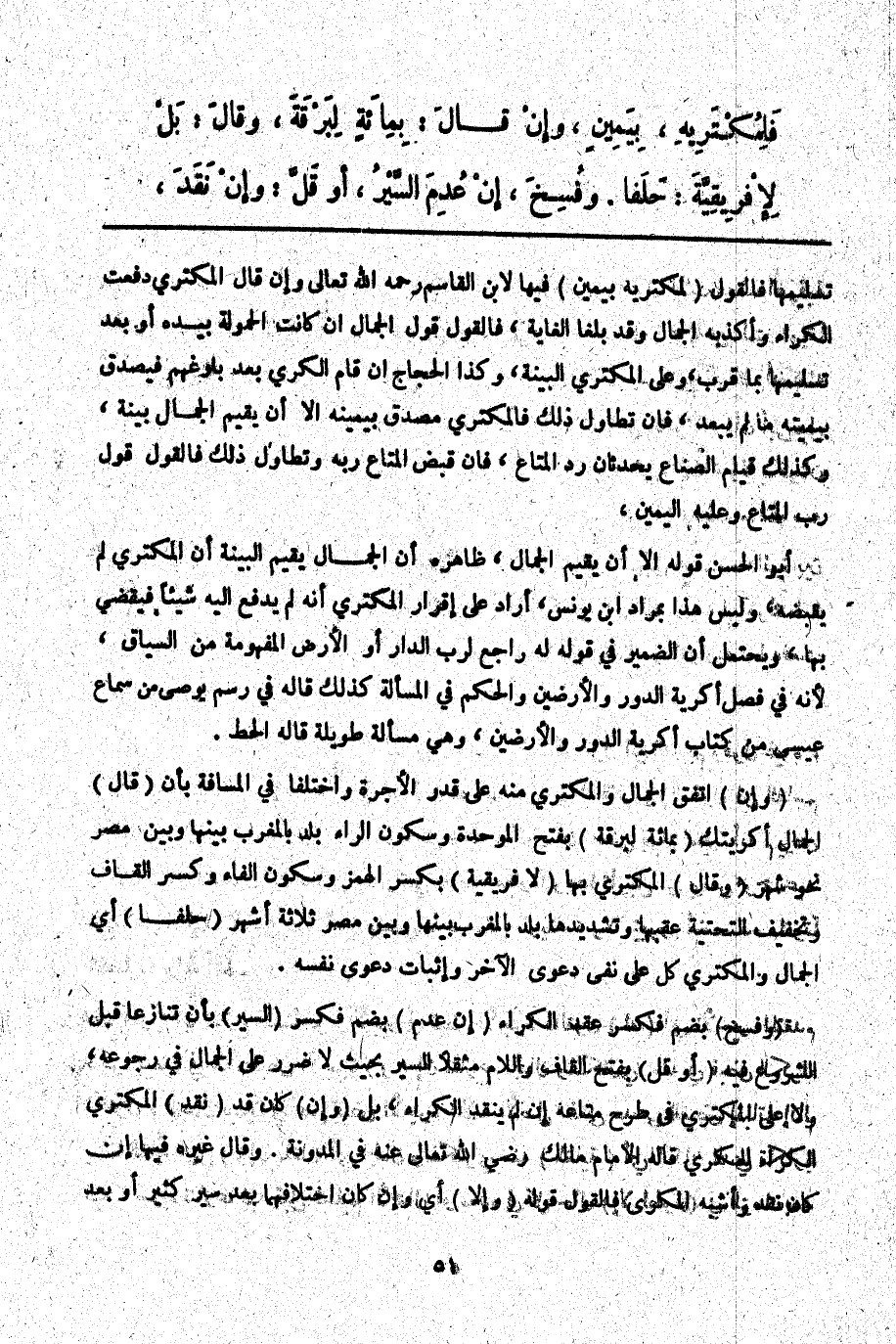 (وَإِنْ) اتَّفَقَ الْجَمَّالُ وَالْمُكْتَرِي مِنْهُ عَلَى قَدْرِ الْأُجْرَةِ وَاخْتَلَفَا فِي الْمَسَافَةِ بِأَنْ (قَالَ) الْجَمَّالُ أَكْرَيْتك (بِمِائَةٍ لِبَرْقَةَ) بِفَتْحِ الْمُوَحَّدَةِ وَسُكُونِ الرَّاءِ بَلَدٌ بِالْمَغْرِبِ بَيْنَهَا وَبَيْنَ مِصْرَ نَحْوُ شَهْرٍ (وَقَالَ) الْمُكْتَرِي بِهَا (لِإِفْرِيقِيَّةَ) بِكَسْرِ الْهَمْزِ وَسُكُونِ الْفَاءِ وَكَسْرِ الْقَافِ وَتَخْفِيفِ التَّحْتِيَّةِ عَقِبَهَا وَتَشْدِيدِهَا بَلَدٌ بِالْمَغْرِبِ بَيْنَهَا وَبَيْنَ مِصْرَ ثَلَاثَةُ أَشْهُرٍ (حَلَفَا) أَيْ الْجَمَّالُ وَالْمُكْتَرِي كُلٌّ عَلَى نَفْيِ دَعْوَى الْآخَرِ وَإِثْبَاتِ دَعْوَى نَفْسِهِ. (وَفُسِخَ) بِضَمٍّ فَكَسْرٍ عَقْدُ الْكِرَاءِ (إنْ عُدِمَ) بِضَمٍّ فَكَسْرٍ (السَّيْرُ) بِأَنْ تَنَازَعَا قَبْلَ الشُّرُوعِ فِيهِ (أَوْ قَلَّ) بِفَتْحِ الْقَافِ وَاللَّامِ مُثَقَّلًا السَّيْرُ بِحَيْثُ لَا ضَرَرَ عَلَى الْجَمَّالِ فِي رُجُوعِهِ، وَلَا عَلَى الْمُكْتَرِي فِي طَرْحِ مَتَاعِهِ إنْ لَمْ يَنْقُدْ الْكِرَاءَ، بَلْ (وَإِنْ) كَانَ قَدْ (نَقَدَ) الْمُكْتَرِي الْكِرَاءَ لِلْمُكْرِي قَالَهُ الْإِمَامُ مَالِكٌ - رَضِيَ اللَّهُ تَعَالَى عَنْهُ - فِي الْمُدَوَّنَةِ. وَقَالَ غَيْرُهُ: فِيهَا إنْ كَانَ نَقَدَ وَأَشْبَهَ الْمُكْرِيَ فَالْقَوْلُ قَوْلُهُ (وَإِلَّا) أَيْ وَإِنْ كَانَ اخْتِلَافُهُمَا بَعْدَ سَيْرٍ كَثِيرٍ أَوْ بَعْدَ