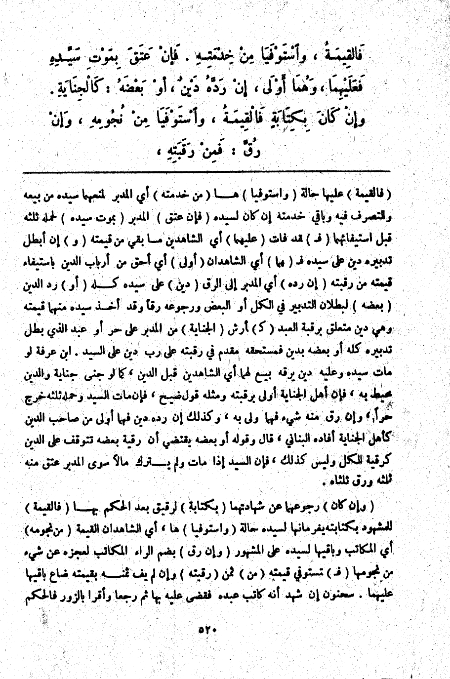 ـــــــــــــــــــــــــــــQفَالْقِيمَةُ) عَلَيْهَا حَالَّةً (وَاسْتَوْفَيَا) هَا (مِنْ خِدْمَتِهِ) أَيْ الْمُدَبَّرِ لِمَنْعِهِمَا سَيِّدَهُ مِنْ بَيْعِهِ وَالتَّصَرُّفِ فِيهِ وَبَاقِي خِدْمَتِهِ إنْ كَانَ لِسَيِّدِهِ (فَإِنْ عَتَقَ) الْمُدَبَّرُ (بِمَوْتِ سَيِّدِهِ) لِحَمْلِهِ ثُلُثَهُ قَبْلَ اسْتِيفَائِهِمَا (فَ) قَدْ فَاتَ (عَلَيْهِمَا) أَيْ الشَّاهِدَيْنِ مَا بَقِيَ مِنْ قِيمَتِهِ (وَ) إنْ أَبْطَلَ تَدْبِيرَهُ دُيِّنَ عَلَى سَيِّدِهِ فَ (هُمَا) أَيْ الشَّاهِدَانِ (أَوْلَى) أَيْ أَحَقُّ مِنْ أَرْبَابِ الدَّيْنِ بِاسْتِيفَاءِ قِيمَتِهِ مِنْ رَقَبَتِهِ (إنْ رَدَّهُ) أَيْ الْمُدَبَّرَ إلَى الرِّقِّ (دَيْنٌ) عَلَى سَيِّدِهِ كُلَّهُ (أَوْ) رَدَّ الدَّيْنَ (بَعْضَهُ) لِبُطْلَانِ التَّدْبِيرِ فِي الْكُلِّ أَوْ الْبَعْضِ وَرُجُوعِهِ رِقًّا وَقَدْ أَخَذَ سَيِّدُهُ مِنْهُمَا قِيمَتَهُ وَهِيَ دَيْنٌ مُتَعَلِّقٌ بِرَقَبَةِ الْعَبْدِ (كَ) أَرْشِ (الْجِنَايَةِ) مِنْ الْمُدَبَّرِ عَلَى حُرٍّ أَوْ عَبْدِ الَّذِي بَطَلَ تَدْبِيرُهُ كُلُّهُ أَوْ بَعْضُهُ بِدَيْنٍ فَمُسْتَحِقُّهُ مُقَدَّمٌ فِي رَقَبَتِهِ عَلَى رَبِّ دَيْنٍ عَلَى السَّيِّدِ. ابْنُ عَرَفَةَ لَوْ مَاتَ سَيِّدُهُ وَعَلَيْهِ دَيْنٌ بِرِقِّهِ بِيعَ لَهُمَا أَيْ الشَّاهِدَيْنِ قَبْلَ الدَّيْنِ كَمَا لَوْ جَنَى جِنَايَةً وَالدَّيْنُ مُحِيطٌ بِهِ، فَإِنَّ أَهْلَ الْجِنَايَةِ أَوْلَى بِرَقَبَتِهِ وَمِثْلُهُ قَوْلُ ضَيْح، فَإِنْ مَاتَ السَّيِّدُ وَحَمَلَهُ ثُلُثُهُ خَرَجَ حُرًّا، وَإِنْ رَقَّ مِنْهُ شَيْءٌ فَهُمَا أَوْلَى بِهِ، وَكَذَلِكَ إنْ رَدَّهُ دَيْنٌ فَهُمَا أَوْلَى مِنْ صَاحِبِ الدَّيْنِ كَأَهْلِ الْجِنَايَةِ أَفَادَهُ الْبُنَانِيُّ، قَالَ وَقَوْلُهُ أَوْ بَعْضَهُ يَقْتَضِي أَنَّ رُقْيَةَ بَعْضِهِ تَتَوَقَّفُ عَلَى الدَّيْنِ كَرِقِّيَّةِ الْكُلِّ وَلَيْسَ كَذَلِكَ، فَإِنَّ السَّيِّدَ إذَا مَاتَ وَلَمْ يَتْرُكْ مَالًا سِوَى الْمُدَبَّرِ عَتَقَ مِنْهُ ثُلُثُهُ وَرَقَّ ثُلُثَاهُ.