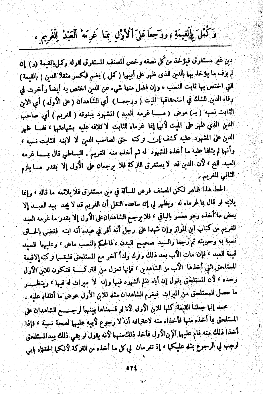 ـــــــــــــــــــــــــــــQدَيْنٌ غَيْرُ مُسْتَغْرِقٍ فَيُؤْخَذُ مِنْ كُلٍّ نِصْفُهُ وَخَصَّ الْمُصَنِّفُ الْمُسْتَغْرِقَ لِقَوْلِهِ وَكُمِّلَ بِالْقِيمَةِ (وَ) إنْ لَمْ يُوَفِّ مَا يُؤْخَذُ بِهِمَا بِالدَّيْنِ الَّذِي ظَهَرَ عَلَى أَبِيهِمَا (كُمِّلَ) بِضَمٍّ فَكَسْرٍ مُثَقَّلًا الدَّيْنُ (بِالْقِيمَةِ) الَّتِي اخْتَصَّ بِهَا ثَابِتُ النَّسَبِ، وَإِنْ فَضَلَ مِنْهَا شَيْءٌ عَنْ الدَّيْنِ اخْتَصَّ بِهِ أَيْضًا وَأُخِّرَتْ فِي وَفَاءِ الدَّيْنِ لِلشَّكِّ فِي اسْتِحْقَاقِهَا الْمَيِّتِ (وَرَجَعَا) أَيْ الشَّاهِدَانِ (عَلَى الْأَوَّلِ) أَيْ الِابْنِ الثَّابِتِ نَسَبُهُ (بِ) عِوَضِ (مَا غَرِمَهُ الْعَبْدُ) الْمَشْهُودُ بِبُنُوَّتِهِ (لِلْغَرِيمِ) أَيْ صَاحِبِ الدَّيْنِ الَّذِي ظَهَرَ عَلَى الْمَيِّتِ؛ لِأَنَّهُمَا إنَّمَا غَرِمَاهُ لِلثَّابِتِ لِإِتْلَافِهِ عَلَيْهِ بِشَهَادَتِهِمَا، فَلَمَّا ظَهَرَ الدَّيْنُ عَلَى الْمَشْهُودِ عَلَيْهِ كَشَفَ أَنَّ تَرِكَتَهُ حَقٌّ لِصَاحِبِ الدَّيْنِ لَا لِابْنِهِ الثَّابِتِ نَسَبُهُ، وَأَنَّهُمَا لَمْ يُتْلِفَا عَلَيْهِ مَا أَخَذَهُ الْمَشْهُودُ لَهُ ثُمَّ أَخَذَهُ مِنْهُ الْغَرِيمُ. الْبِسَاطِيُّ قَالَ بِمَا غَرِمَهُ لِلْعَبْدِ إلَخْ؛ لِأَنَّ الدَّيْنَ قَدْ لَا يَسْتَغْرِقُ التَّرِكَةَ فَلَا يَرْجِعَانِ عَلَى الْأَوَّلِ إلَّا بِقَدْرِ مَا يَلْزَمُ الثَّانِي لِلْغَرِيمِ. الْحَطّ هَذَا ظَاهِرٌ لَكِنْ الْمُصَنِّفُ فَرَضَ الْمَسْأَلَةَ فِي دَيْنٍ مُسْتَغْرِقٍ فَلَا يُلَائِمُهُ مَا قَالَهُ، وَإِنَّمَا يُلَائِمُهُ لَوْ قَالَ بِمَا غَرِمَاهُ لَهُ وَيَظْهَرُ لِي إنْ سَاعَدَهُ النَّقْلُ أَنَّ الْغَرِيمَ قَدْ لَا يَجِدُ بِيَدِ الْعَبْدِ إلَّا بَعْضَ مَا أَخَذَهُ وَهُوَ مُعْسِرٌ بِالْبَاقِي، فَلَا يَرْجِعُ الشَّاهِدَانِ عَلَى الْأَوَّلِ إلَّا بِقَدْرِ مَا غَرِمَهُ الْعَبْدُ لِلْغَرِيمِ مِنْ كِتَابِ ابْنِ الْمَوَّازِ وَإِنْ شَهِدَا عَلَى رَجُلٍ أَنَّهُ أَقَرَّ فِي عَبْدِهِ أَنَّهُ ابْنُهُ فَقَضَى بِإِلْحَاقِ نَسَبِهِ بِهِ وَحُرِّيَّتِهِ ثُمَّ رَجَعَا وَالسَّيِّدُ صَحِيحُ الْبَدَنِ، فَالْحُكْمُ بِالنَّسَبِ مَاضٍ، وَعَلَيْهِمَا لِلسَّيِّدِ قِيمَةُ الْعَبْدِ، فَإِنْ مَاتَ الْأَبُ بَعْدَ ذَلِكَ وَتَرَكَ وَلَدًا آخَرَ مَعَ الْمُسْتَلْحَقِ فَلْيَقْسِمَا تَرِكَتَهُ إلَّا قِيمَةَ الْمُسْتَلْحَقِ الَّتِي أَخَذَهَا الْأَبُ مِنْ الشَّاهِدَيْنِ، فَإِنَّهَا تُعْزَلُ مِنْ التَّرِكَةِ فَتَكُونُ لِلِابْنِ الْأَوَّلِ وَحْدَهُ؛ لِأَنَّ الْمُسْتَلْحَقَ يَقُولُ إنَّ أَبَاهُ ظَلَمَ الشُّهُودَ فِيهَا وَإِنَّهُ لَا مِيرَاثَ لَهُ فِيهَا، وَيَنْظُرُ مَا حَصَلَ لِلْمُسْتَلْحَقِ مِنْ الْمِيرَاثِ فَيَغْرَمُ الشَّاهِدَانِ مِثْلَهُ لِلِابْنِ الْأَوَّلِ عِوَضَ مَا أَتْلَفَاهُ عَلَيْهِ. مُحَمَّدٌ إنَّمَا جَعَلْنَا الْقِيمَةَ كُلَّهَا لِلِابْنِ الْأَوَّلِ؛ لِأَنَّا لَوْ قَسَمْنَاهَا بَيْنَهُمَا لَرَجَعَ الشَّاهِدَانِ عَلَى الْمُسْتَلْحَقِ بِمَا أَخَذَهُ مِنْهَا فَأَخَذَاهُ مِنْهُ لِاعْتِرَافِهِ أَنَّهُ لَا رُجُوعَ لِأَبِيهِ عَلَيْهِمَا لِصِحَّةِ نَسَبِهِ، فَإِذَا أَخَذَا ذَلِكَ مِنْهُ قَامَ عَلَيْهِمَا الِابْنُ الْأَوَّلُ فَأَخَذَ ذَلِكَ مِنْهُمَا؛ لِأَنَّهُ يَقُولُ لَوْ بَقِيَ ذَلِكَ بِيَدِ الْمُسْتَلْحَقِ لَوَجَبَ لِي الرُّجُوعِ بِمِثْلِهِ عَلَيْكُمَا، إذْ تَغْرَمَانِ لِي كُلَّ مَا أَخَذَهُ مِنْ التَّرِكَةِ؛ لِأَنَّكُمَا أَلْحَقْتُمَاهُ