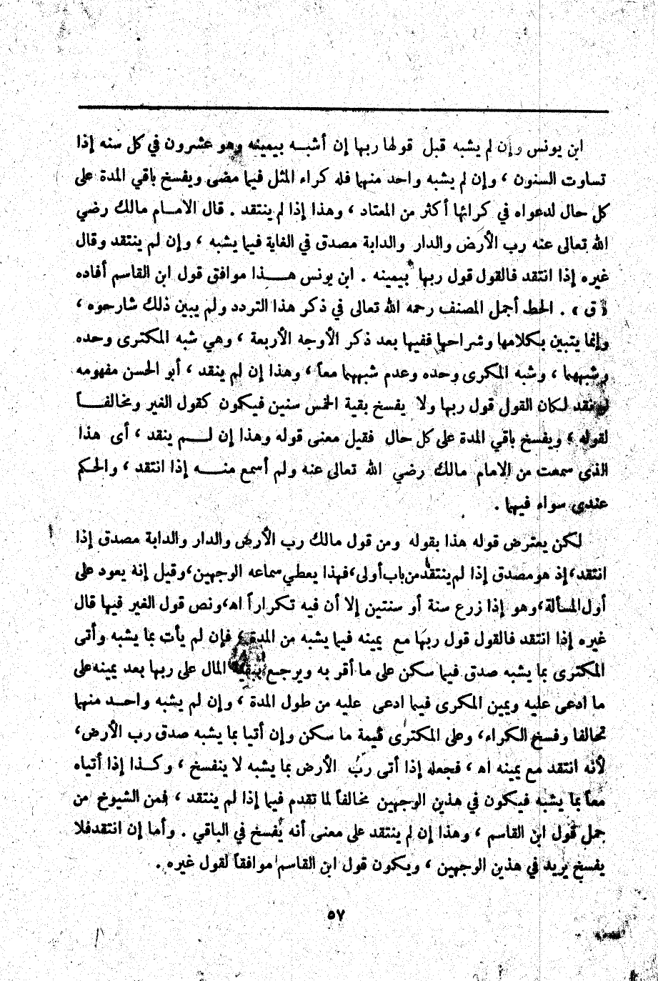 ـــــــــــــــــــــــــــــQابْنُ يُونُسَ وَإِنْ لَمْ يُشْبِهْ قُبِلَ قَوْلُهَا رَبِّهَا إنْ أَشْبَهَ بِيَمِينِهِ، وَهُوَ عِشْرُونَ فِي كُلِّ سَنَةٍ إذَا تَسَاوَتْ السُّنُونَ، وَإِنْ لَمْ يُشْبِهْ وَاحِدٌ مِنْهُمَا فَلَهُ كِرَاءُ الْمِثْلِ فِيمَا مَضَى وَيُفْسَخُ بَاقِي الْمُدَّةِ عَلَى كُلِّ حَالٍ لِدَعْوَاهُ فِي كِرَائِهَا أَكْثَرَ مِنْ الْمُعْتَادِ، وَهَذَا إذَا لَمْ يَنْتَقِدْ. قَالَ الْإِمَامُ مَالِكٌ - رَضِيَ اللَّهُ تَعَالَى عَنْهُ - رَبُّ الْأَرْضِ وَالدَّارِ وَالدَّابَّةِ مُصَدَّقٌ فِي الْغَايَةِ فِيمَا يُشْبِهُ، وَإِنْ لَمْ يَنْتَقِدْ وَقَالَ غَيْرُهُ: إذَا انْتَقَدَ فَالْقَوْلُ قَوْلُ رَبِّهَا بِيَمِينِهِ. ابْنُ يُونُسَ هَذَا مُوَافِقٌ قَوْلَ ابْنِ الْقَاسِمِ أَفَادَهُ " ق ". الْحَطّ أَجْمَلَ الْمُصَنِّفُ - رَحِمَهُ اللَّهُ تَعَالَى - فِي ذِكْرِ هَذَا التَّرَدُّدِ وَلَمْ يُبَيِّنْ ذَلِكَ شَارِحُوهُ، وَإِنَّمَا يَتَبَيَّنُ بِكَلَامِهَا وَشُرَّاحِهَا فَفِيهَا بَعْدَ ذِكْرِ الْأَوْجُهِ الْأَرْبَعَةِ، وَهِيَ شَبَهُ الْمُكْتَرِي وَحْدَهُ وَشَبَهُهُمَا، وَشَبَهُ الْمُكْرِي وَحْدَهُ وَعَدَمُ شَبَهِهِمَا مَعًا، وَهَذَا إنْ لَمْ يَنْقُدْ أَبُو الْحَسَنِ مَفْهُومُهُ لَوْ نَقَدَ لَكَانَ الْقَوْلُ قَوْلَ رَبِّهَا وَلَا يُفْسَخُ بَقِيَّةَ الْخَمْسِ سِنِينَ فَيَكُونُ كَقَوْلِ الْغَيْرِ وَمُخَالِفًا لِقَوْلِهِ، وَيُفْسَخُ بَاقِي الْمُدَّةِ عَلَى كُلِّ حَالٍ فَقِيلَ مَعْنَى قَوْلِهِ وَهَذَا إنْ لَمْ يَنْقُدْ، أَيْ هَذَا الَّذِي سَمِعْت مِنْ الْإِمَامِ مَالِكٍ - رَضِيَ اللَّهُ تَعَالَى عَنْهُ - وَلَمْ أَسْمَعْ مِنْهُ إذَا انْتَقَدَ، وَالْحُكْمُ عِنْدِي سَوَاءٌ فِيهِمَا.