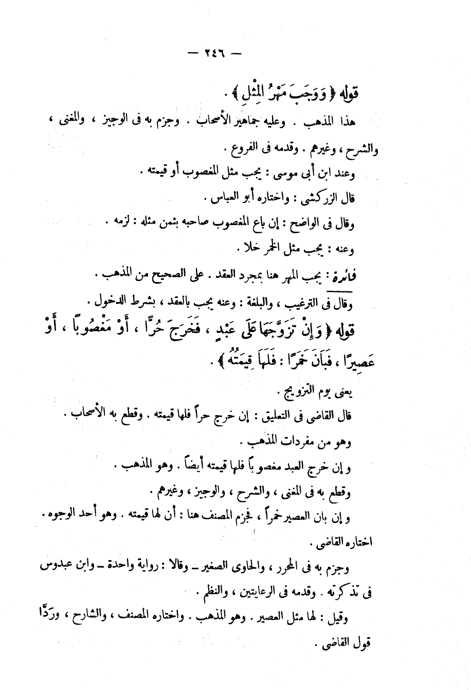 قَوْلُهُ (وَإِنْ تَزَوَّجَهَا عَلَى عَبْدٍ، فَخَرَجَ حُرًّا، أَوْ مَغْصُوبًا، أَوْ عَصِيرًا، فَبَانَ خَمْرًا: فَلَهَا قِيمَتُهُ) . يَعْنِي يَوْمَ التَّزْوِيجِ. قَالَ الْقَاضِي فِي التَّعْلِيقِ: إنْ خَرَجَ حُرًّا فَلَهَا قِيمَتُهُ. وَقَطَعَ بِهِ الْأَصْحَابُ. وَهُوَ مِنْ مُفْرَدَاتِ الْمَذْهَبِ. وَإِنْ خَرَجَ الْعَبْدُ مَغْصُوبًا فَلَهَا قِيمَتُهُ أَيْضًا. وَهُوَ الْمَذْهَبُ. وَقَطَعَ بِهِ فِي الْمُغْنِي، وَالشَّرْحِ، وَالْوَجِيزِ، وَغَيْرِهِمْ. وَإِنْ بَانَ الْعَصِيرُ خَمْرًا، فَجَزَمَ الْمُصَنِّفُ هُنَا: أَنَّ لَهَا قِيمَتَهُ. وَهُوَ أَحَدُ الْوُجُوهِ. اخْتَارَهُ الْقَاضِي. وَجَزَمَ بِهِ فِي الْمُحَرَّرِ، وَالْحَاوِي الصَّغِيرِ وَقَالَا: رِوَايَةً وَاحِدَةً وَابْنُ عَبْدُوسٍ فِي تَذْكِرَتِهِ. وَقَدَّمَهُ فِي الرِّعَايَتَيْنِ، وَالنَّظْمِ. وَقِيلَ: لَهَا مِثْلُ الْعَصِيرِ. وَهُوَ الْمَذْهَبُ. وَاخْتَارَهُ الْمُصَنِّفُ، وَالشَّارِحُ، وَرَدَّا قَوْلَ الْقَاضِي.