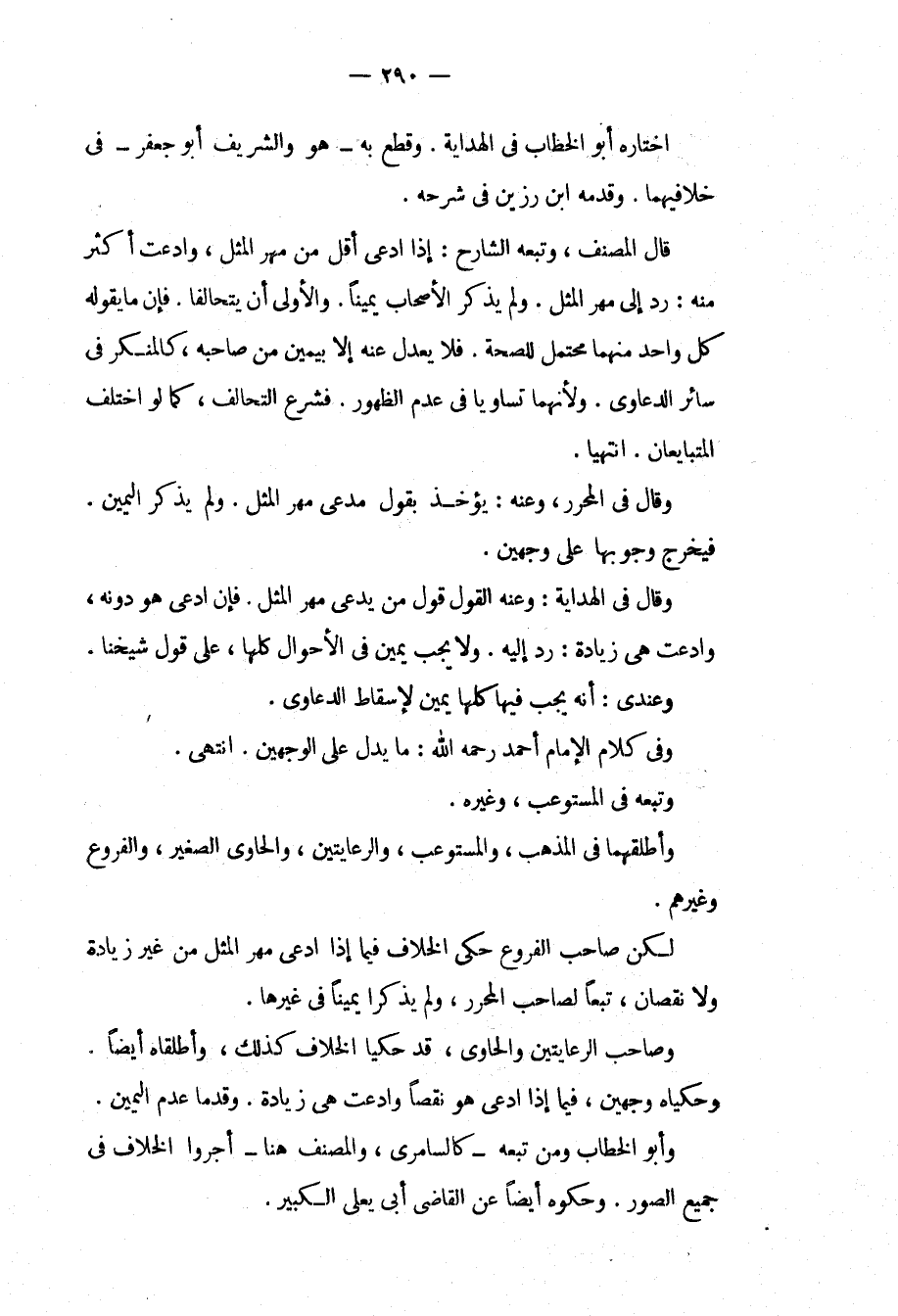 وَتَبِعَهُ فِي الْمُسْتَوْعِبِ، وَغَيْرِهِ. وَأَطْلَقَهُمَا فِي الْمُذْهَبِ، وَالْمُسْتَوْعِبِ، وَالرِّعَايَتَيْنِ، وَالْحَاوِي الصَّغِيرِ، وَالْفُرُوعِ وَغَيْرِهِمْ. لَكِنَّ صَاحِبَ الْفُرُوعِ حَكَى الْخِلَافَ فِيمَا إذَا ادَّعَى مَهْرَ الْمِثْلِ مِنْ غَيْرِ زِيَادَةٍ وَلَا نُقْصَانٍ، تَبَعًا لِصَاحِبِ الْمُحَرَّرِ وَلَمْ يَذْكُرَا يَمِينًا فِي غَيْرِهَا. وَصَاحِبُ الرِّعَايَتَيْنِ وَالْحَاوِي، قَدْ حَكَيَا الْخِلَافَ كَذَلِكَ، وَأَطْلَقَاهُ أَيْضًا. وَحَكَيَاهُ وَجْهَيْنِ، فِيمَا إذَا ادَّعَى هُوَ نَقْصًا وَادَّعَتْ هِيَ زِيَادَةً. وَقَدَّمَا عَدَمَ الْيَمِينِ. وَأَبُو الْخَطَّابِ وَمَنْ تَبِعَهُ كَالسَّامِرِيِّ، وَالْمُصَنِّفِ هُنَا أَجْرَوْا الْخِلَافَ فِي جَمِيعِ الصُّوَرِ. وَحَكَوْهُ أَيْضًا عَنْ الْقَاضِي أَبِي يَعْلَى الْكَبِيرِ.